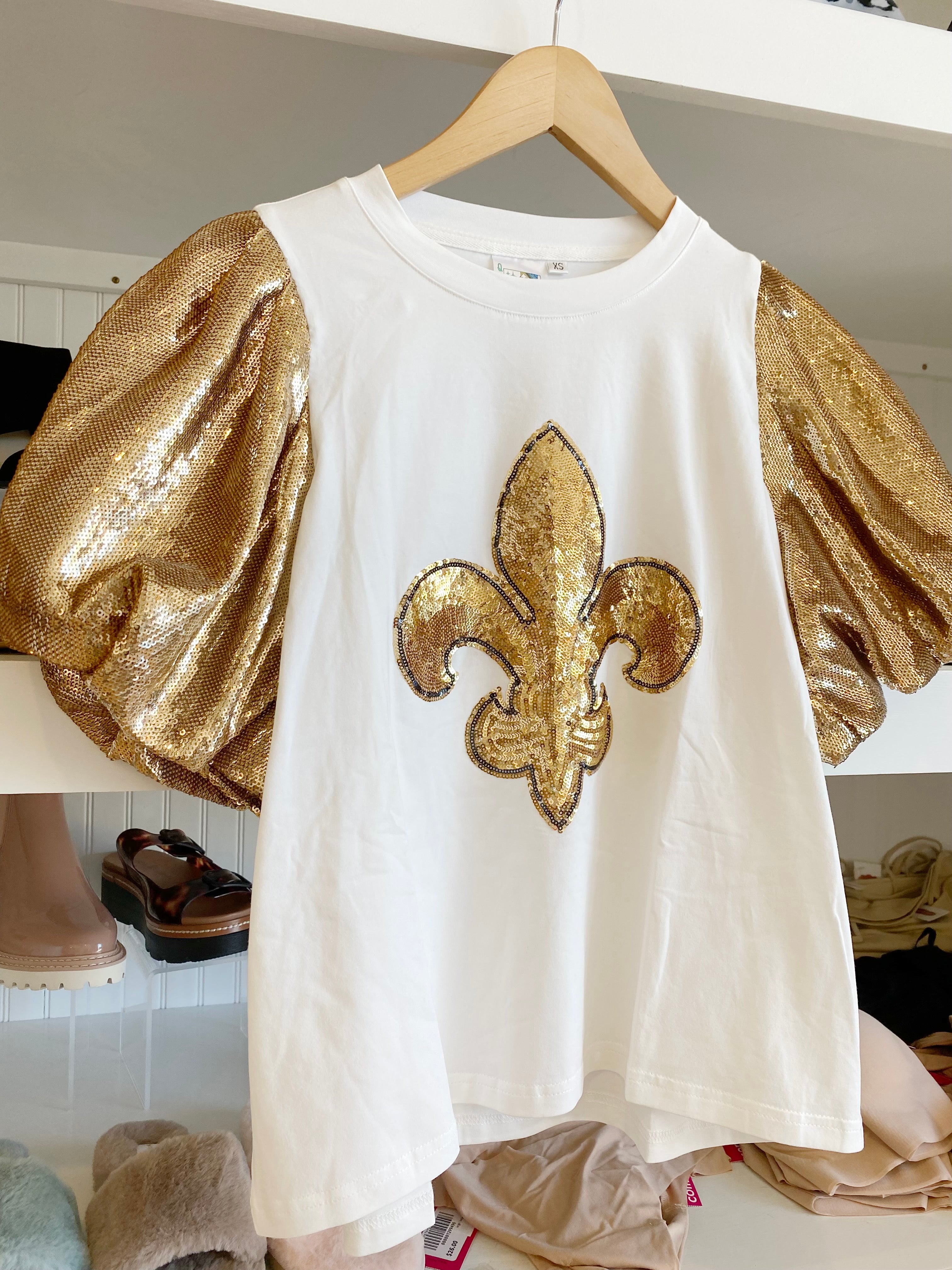 Fleur de Lis Sequin Puff Slv Top