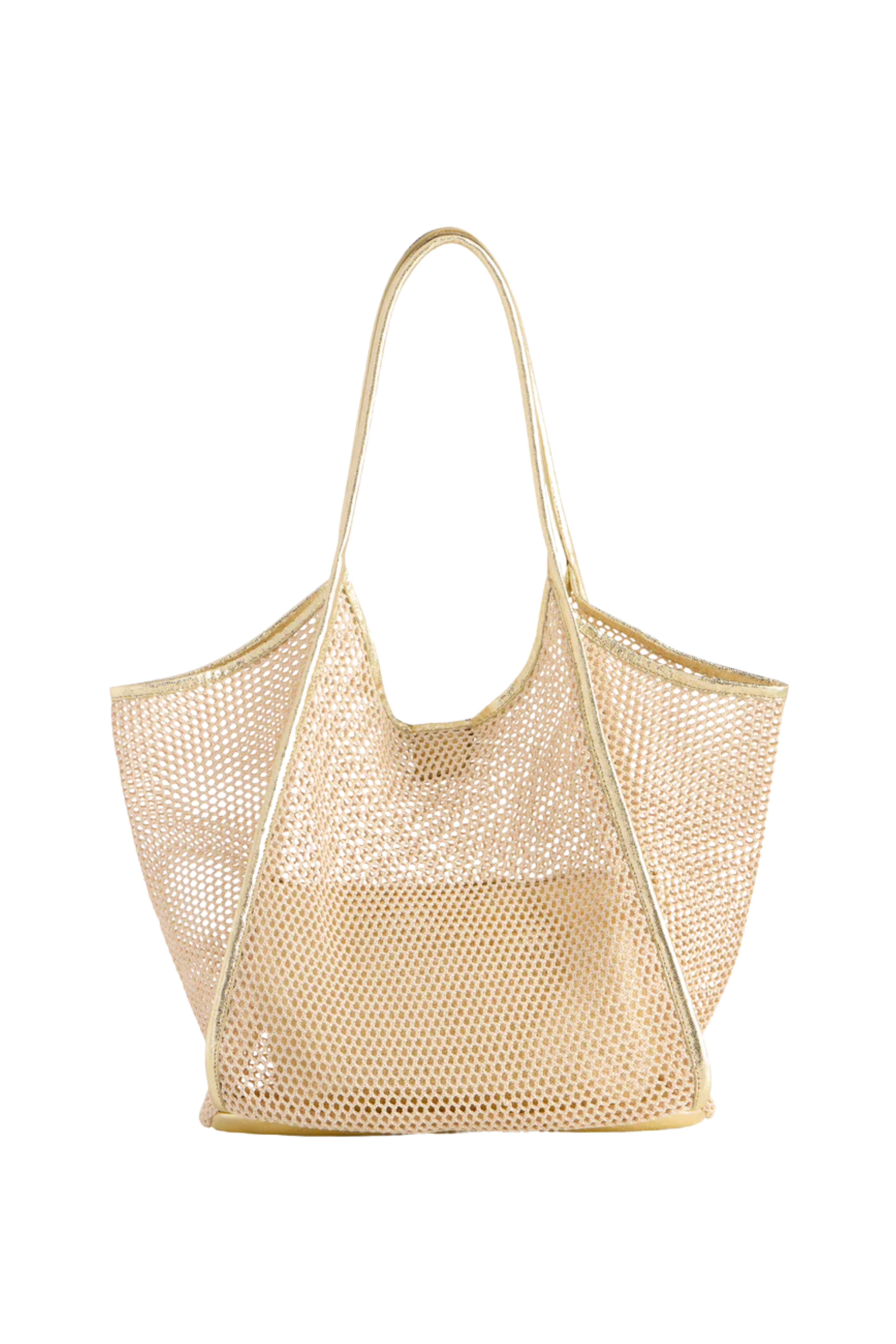 Get ready to shimmer and shine with the Sandra Tote! This breezy, open-weave tote is roomy enough for all your sunny-day essentials and comes with a matching removable zip pouch for effortless organization. Its magnetic snap closure and double shoulder straps make it easy to grab and go—whether you’re heading to the beach or brunch. Lightweight and eye-catching, this tote brings sparkle and style to every adventure.