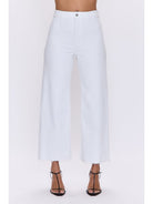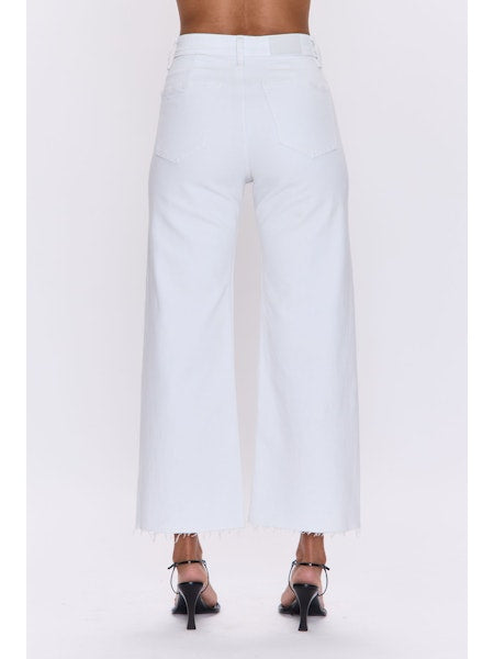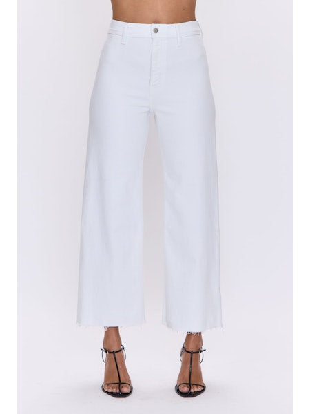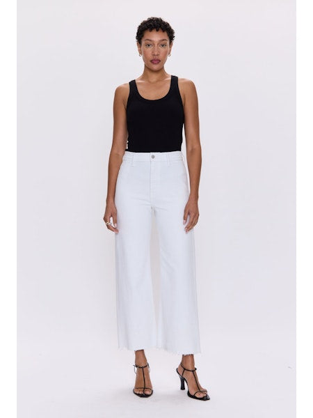 High rise waist, with a wide leg silhouette and a cropped, ankle length hemline. Crafted from Pistola's signature comfort stretch denim, with a double stitched waistline and scissor cut hems.