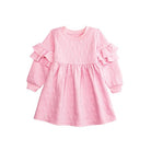 The Quilted Bow Toddler Sweatshirt Dress combines style and comfort, perfect for your little one's wardrobe. This charming dress showcases a quilted bow jacquard pattern, adding a touch of elegance to everyday wear. The ruffle long sleeves provide a playful and feminine flair, while the ribbed neckline and sleeve openings ensure a snug and cozy fit. Crafted from a soft blend of 98% polyester and 2% spandex, this dress offers both durability and flexibility, allowing for easy movement. Available in an extra small size, suitable for ages 6-12 months, this dress is an ideal choice for any occasion, from playdates to family gatherings.