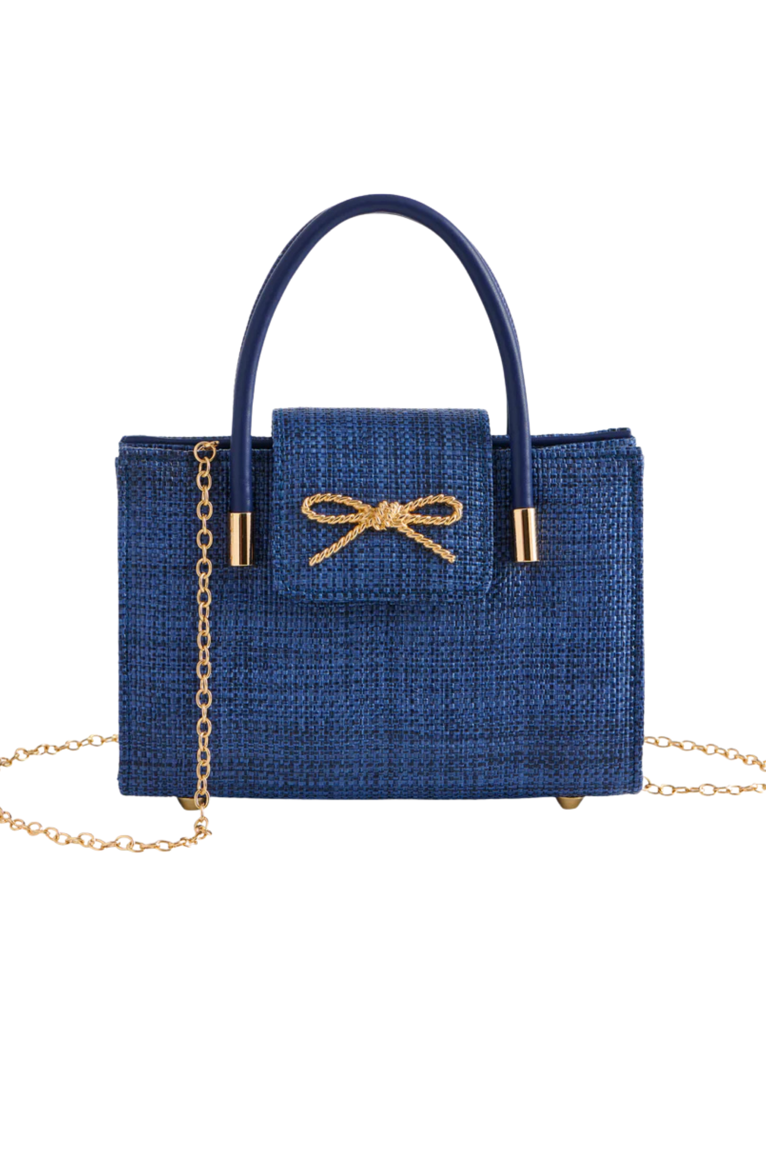 Compact in size but big on charm, the Donna Mini Bag is your new go-to for playful polish. This structured handbag features elegant double top handles, a removable cross-body chain, and a magnetic snap closure that keeps your essentials secure. A subtle inner zip pocket adds a layer of function to its flirty form. With a gold rope bow embellishment on the front flap, it brings a hint of whimsy to everyday elegance.