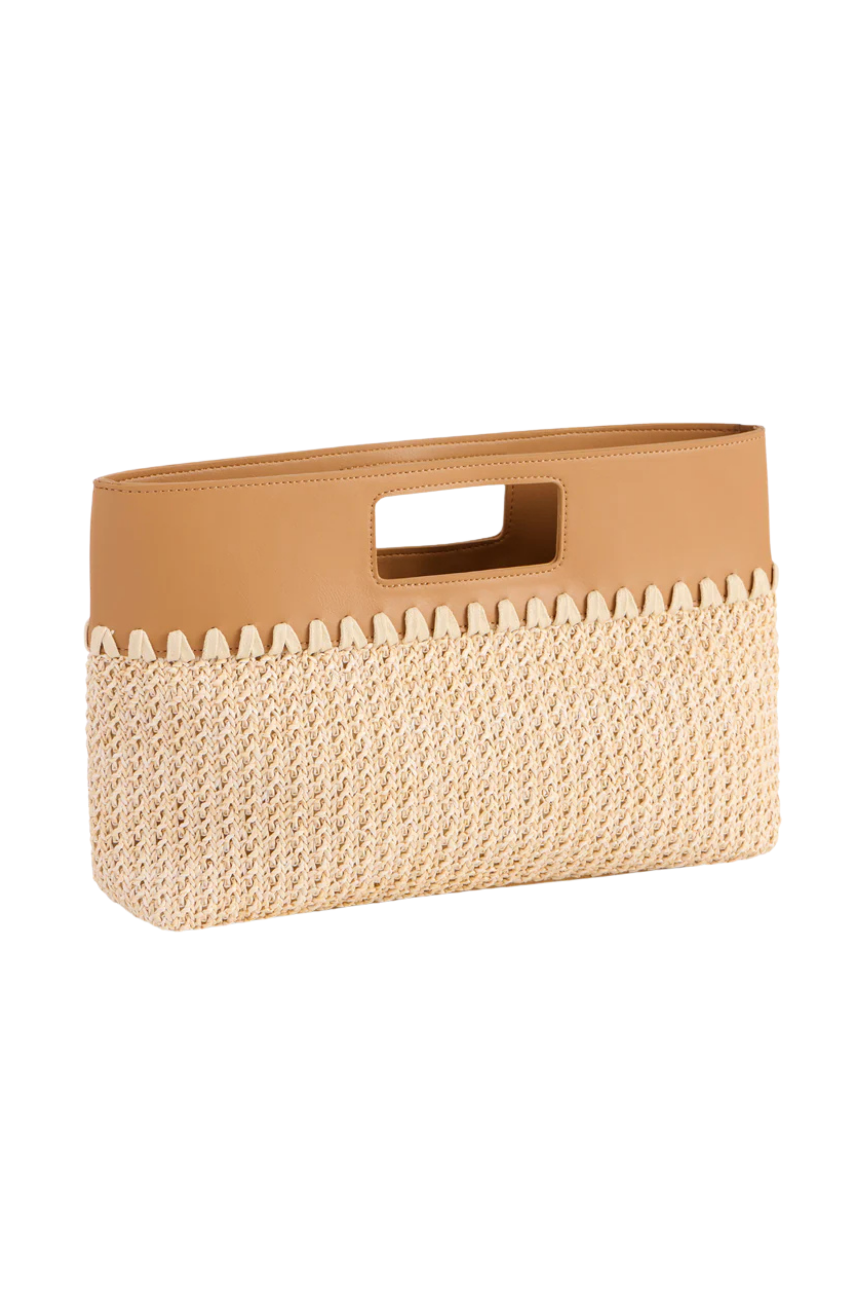 The Mia Top Handle Clutch is the perfect blend of beachy charm and modern edge. Featuring a sleek cutout top handle and a secure magnetic snap closure, this clutch is made for sunny days and stylish nights. With two inner slip pockets and a zip pocket, it’s roomy enough to keep your small essentials organized and close at hand. Whether you're headed to a rooftop soirée or brunch by the water, Mia’s got you covered.