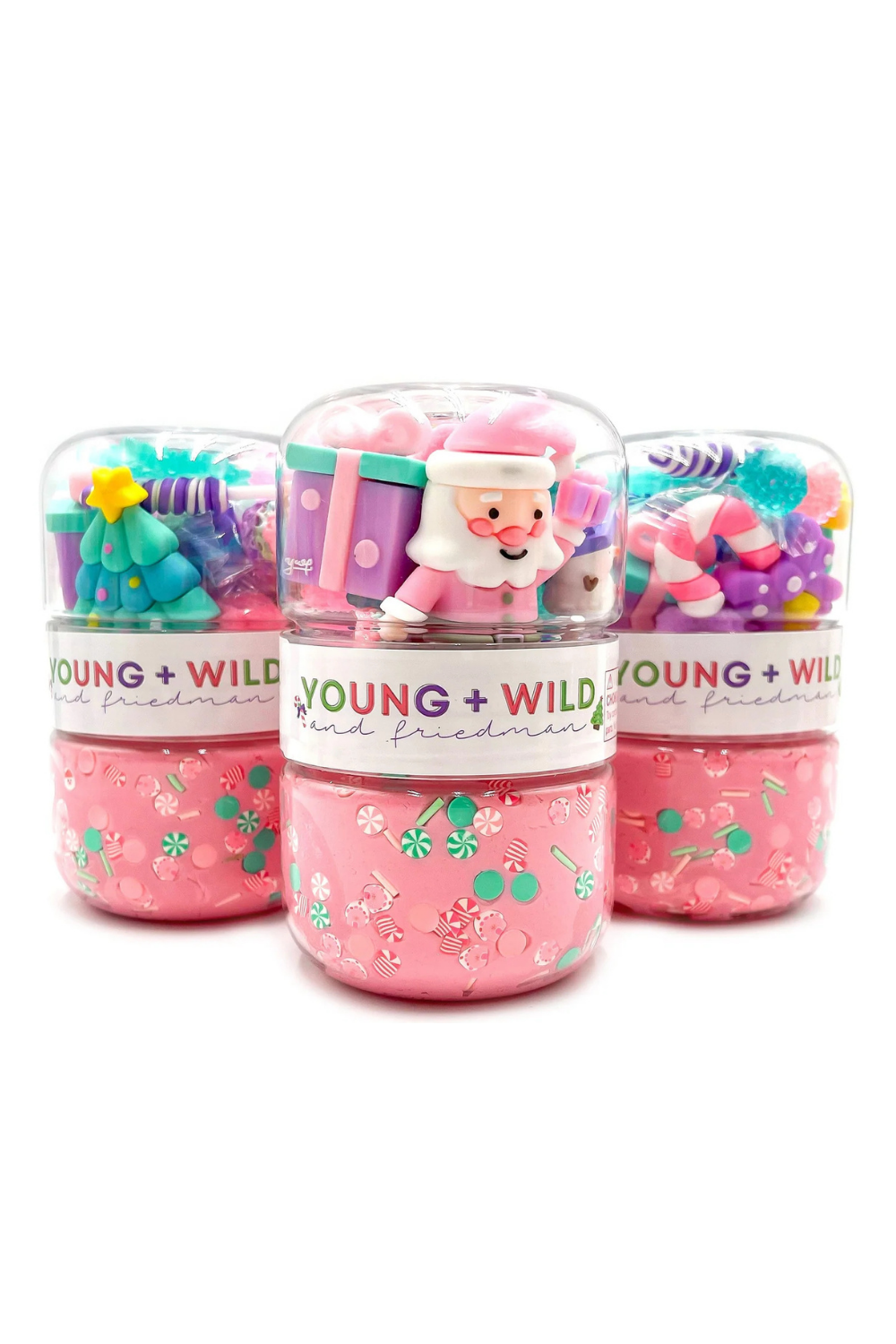 Our Pastel Christmas Grab & Go Dough Jar features one side filled with our signature homemade sensory dough and the other packed with themed trinkets for endless imaginative play. Perfect for stockings, party favors, or on-the-go fun!