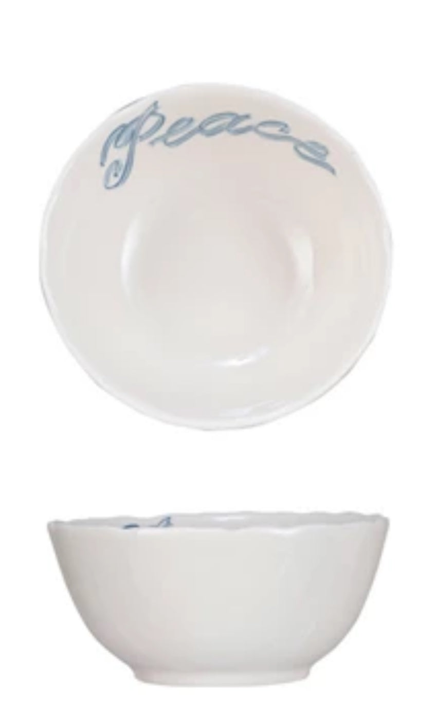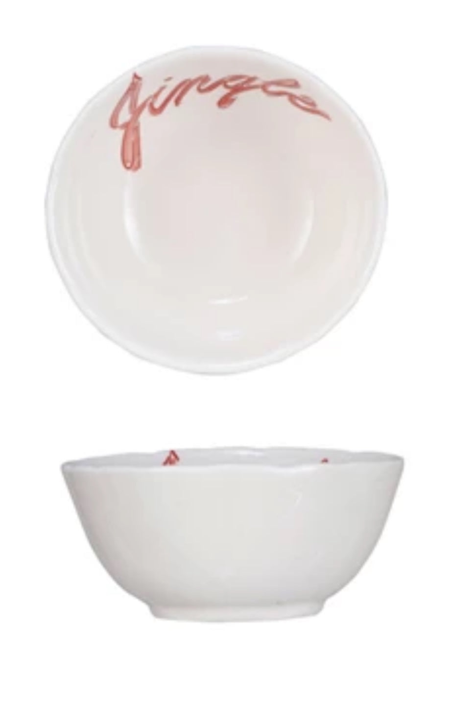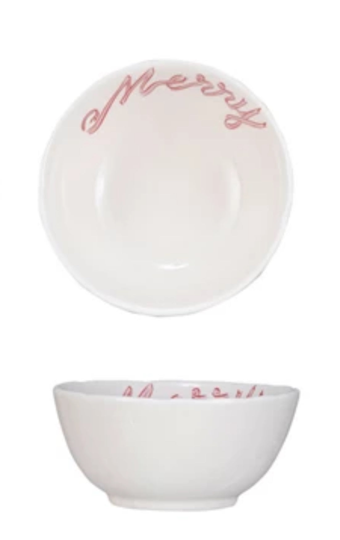 4-1/2" Round x 2-1/4"H Stoneware Bowl w/ Holiday Word, 4 Styles