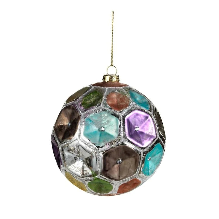 Festive and chic, Dimpled Colored Christmas Ball Ornament will add eye-catching glamour to your holiday decor. This beautiful multicolored glass ball is embellished with clear jewels that create sparkle to brighten the season.