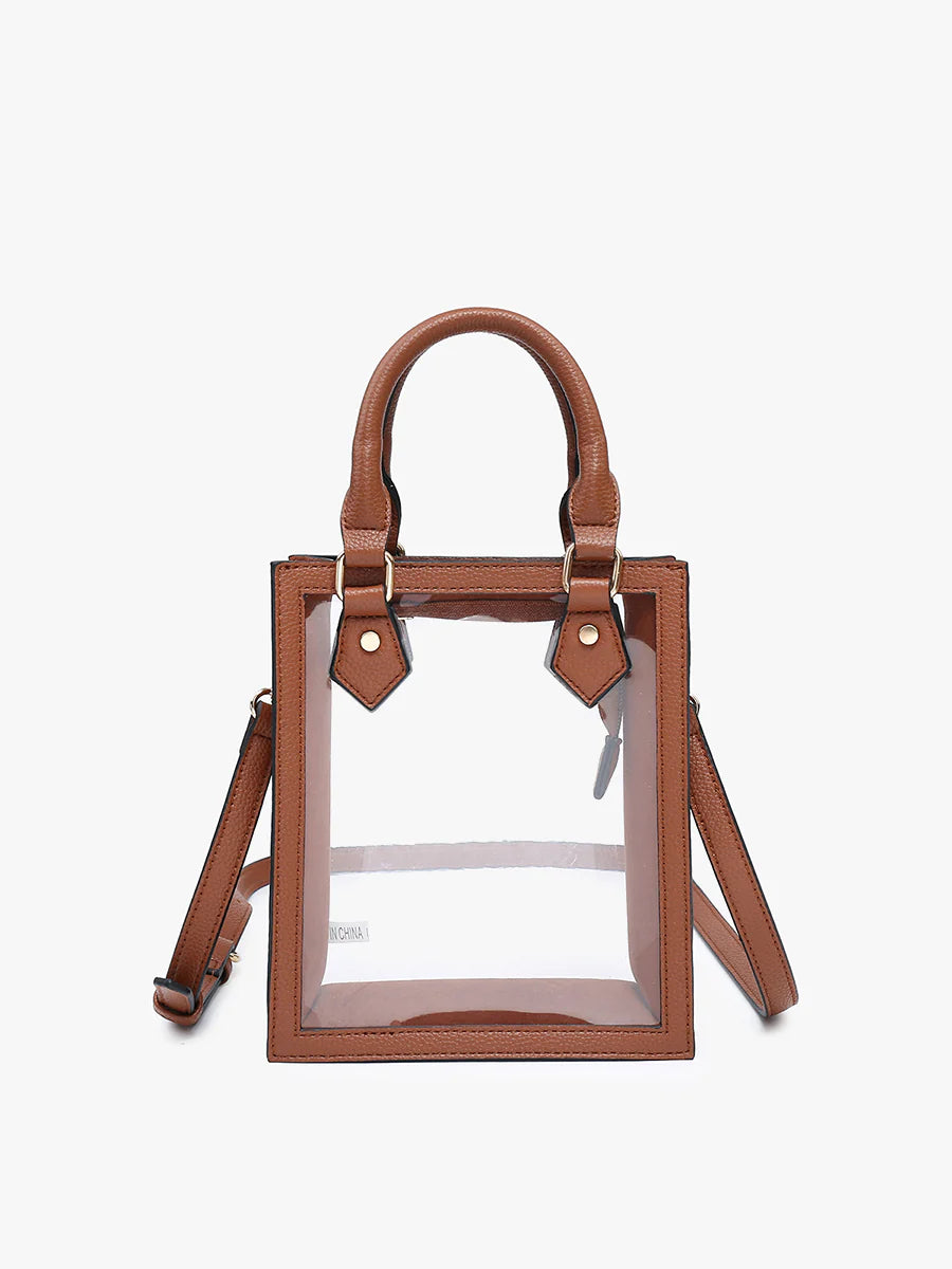 - Modern clear rectangle design with vegan leather trim for a stylish statement.