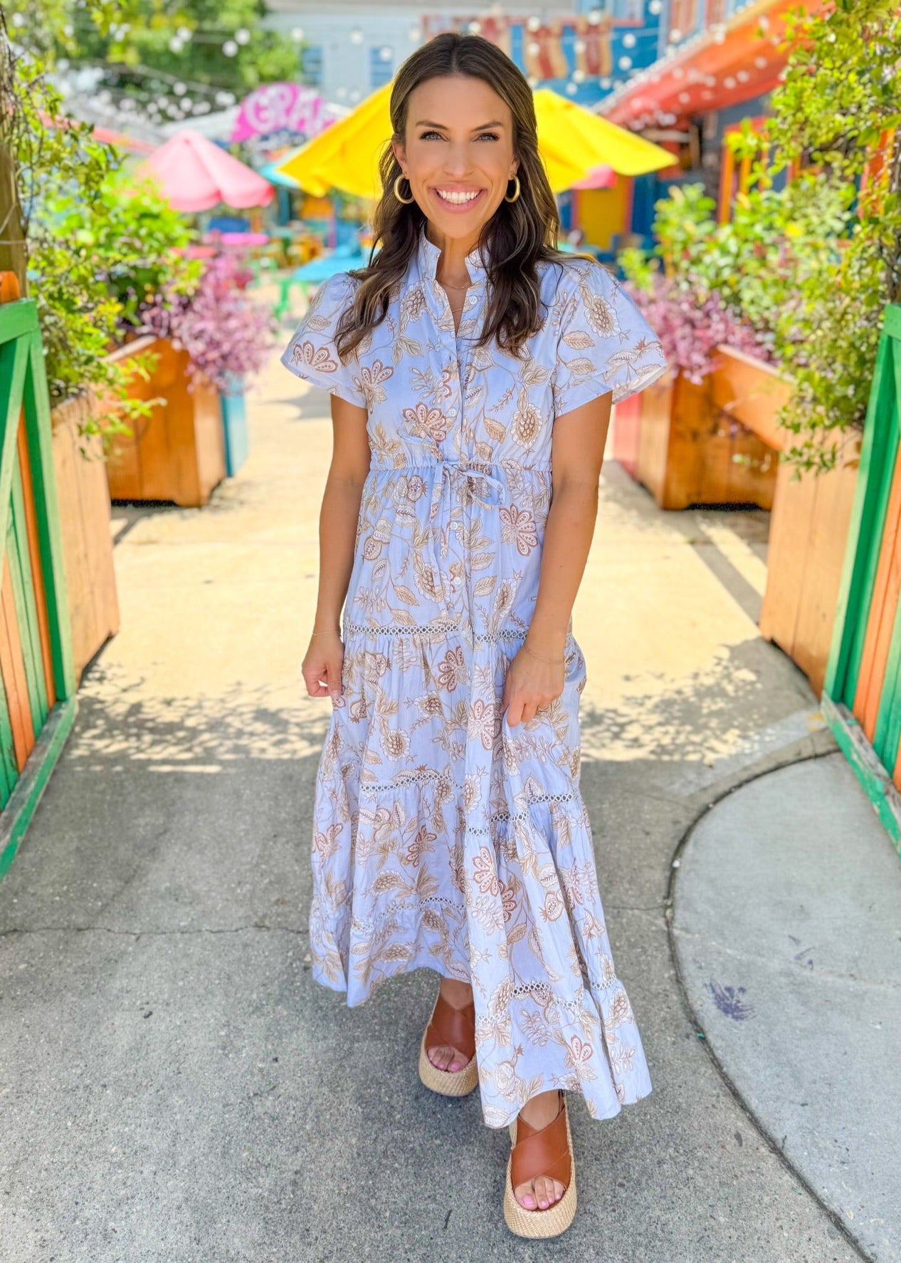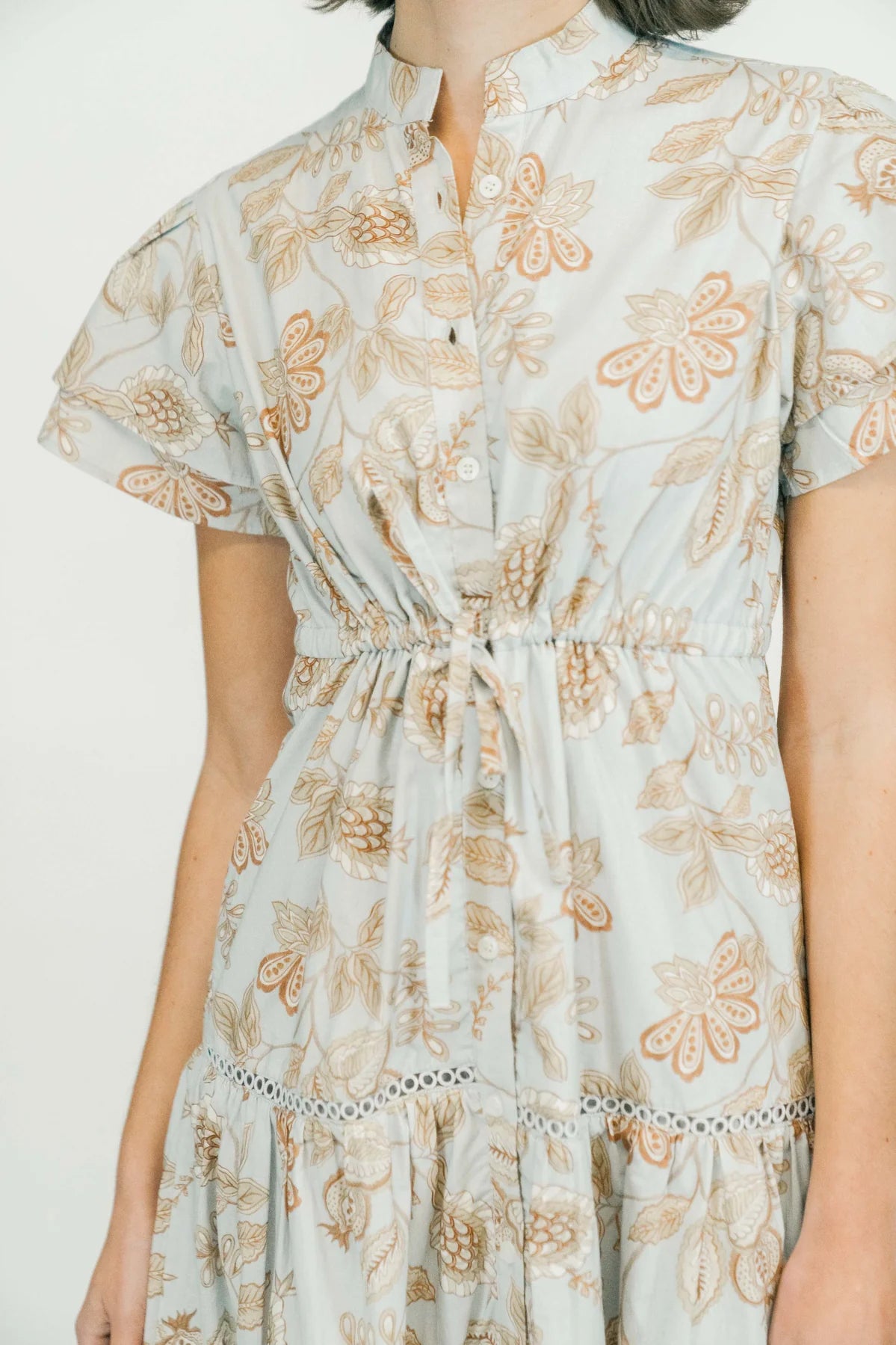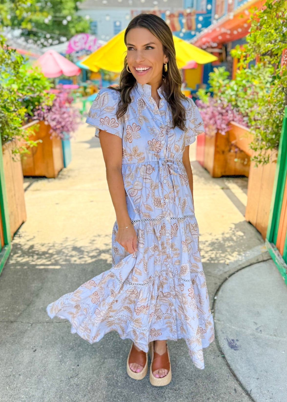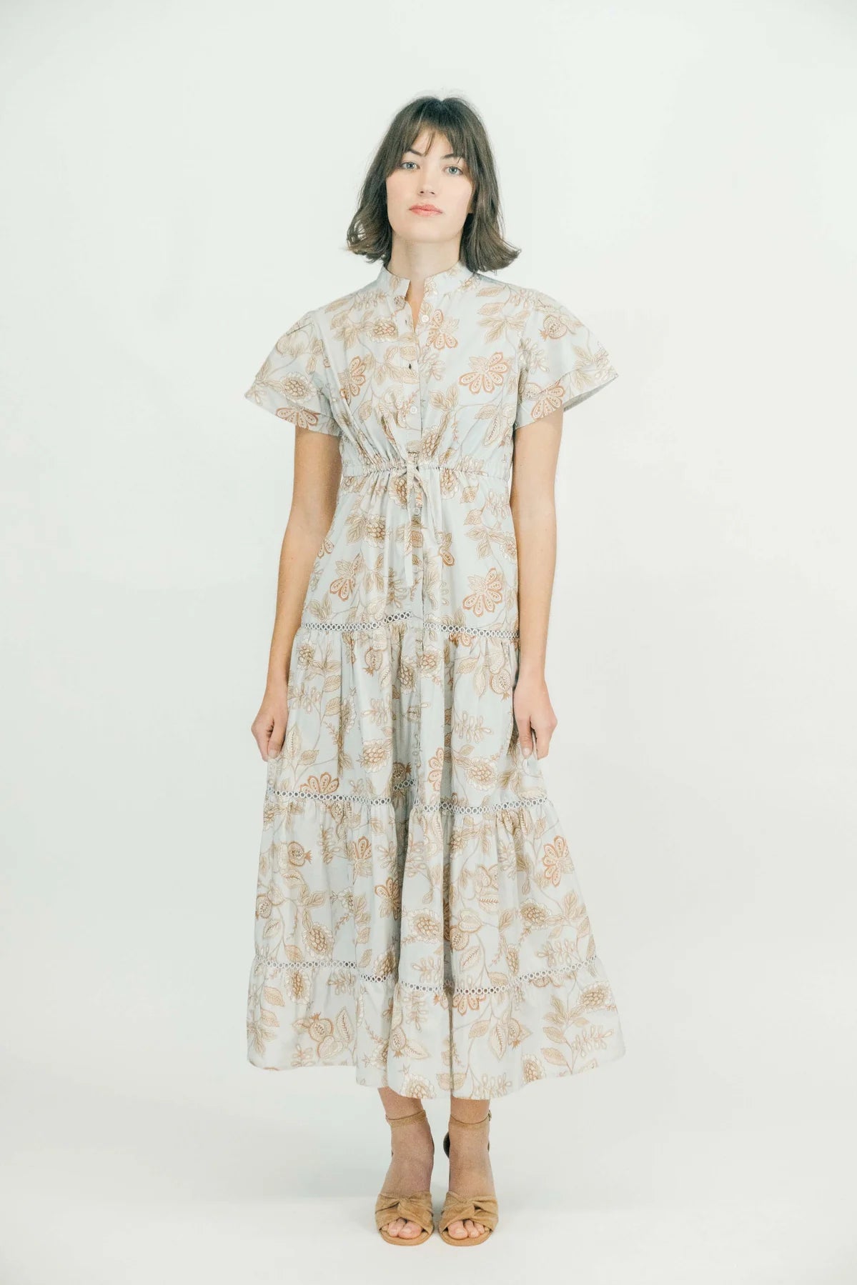 The Hurley features a drawstring waist, tiered skirt, and a functional button front. The double flutter sleeves are the perfect accent to this wardrobe staple.