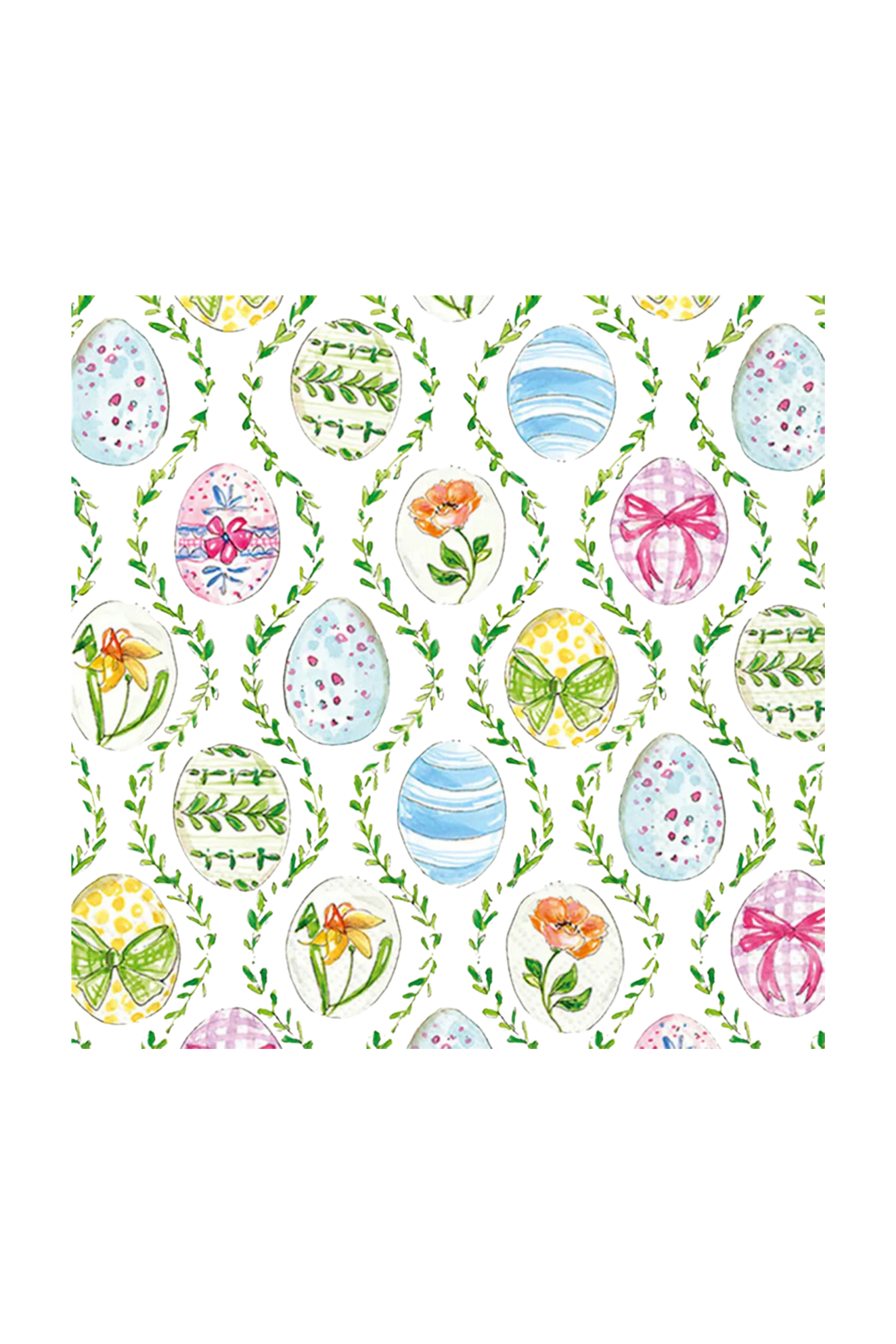 Bring cheerful Easter charm to the table with these paper lunch napkins, adorned with watercolor eggs framed in greenery and finished with playful bows. Soft yet durable, they elevate casual spreads and festive brunches alike while making cleanup a breeze.