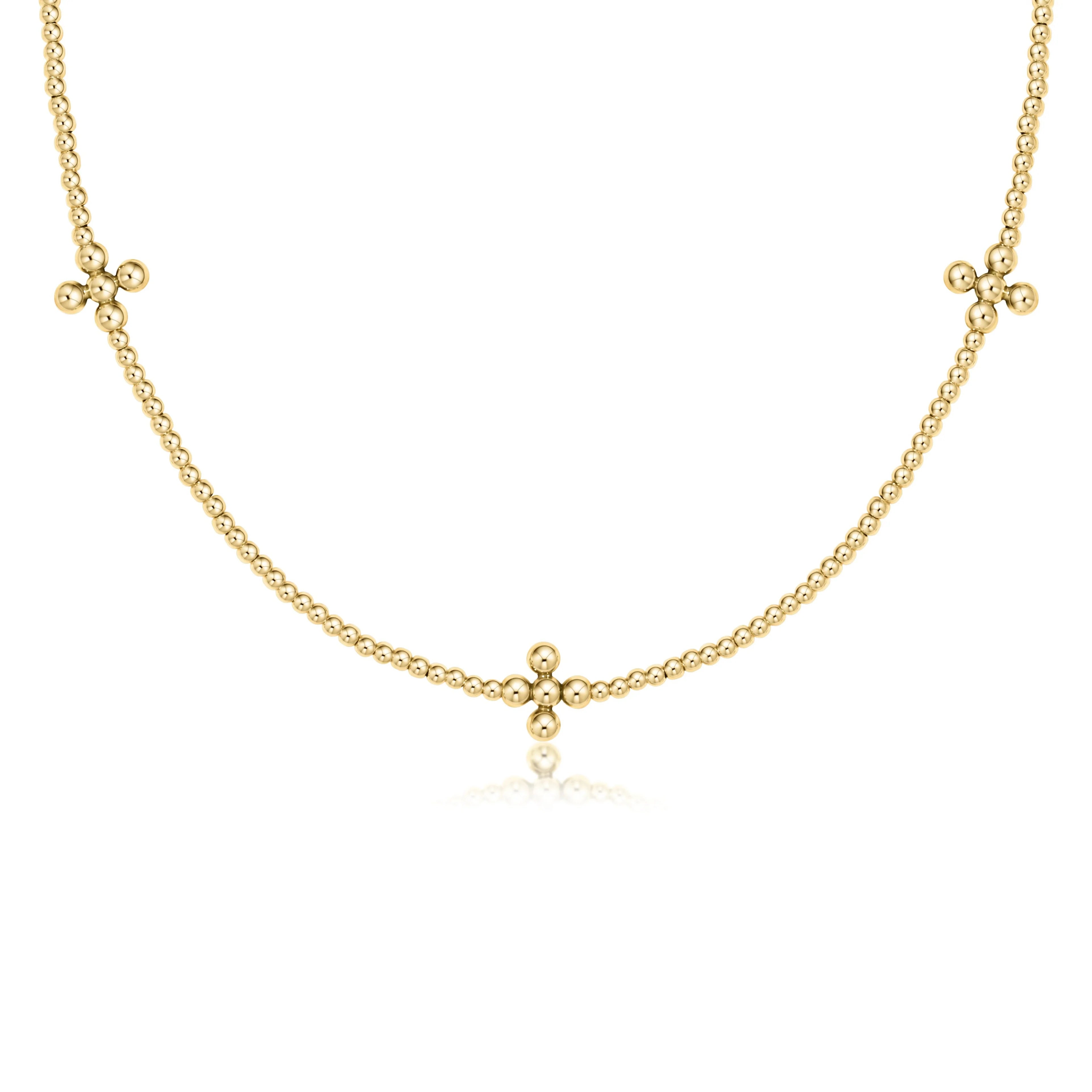 15" Choker Signature Cross Gold 2mm Bead Necklace