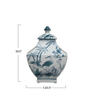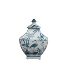 7-1/4" Square x 10-1/2"H Hand-Painted Porcelain Vintage Reproduction Ginger Jar w/ Birds