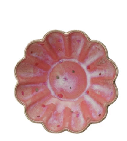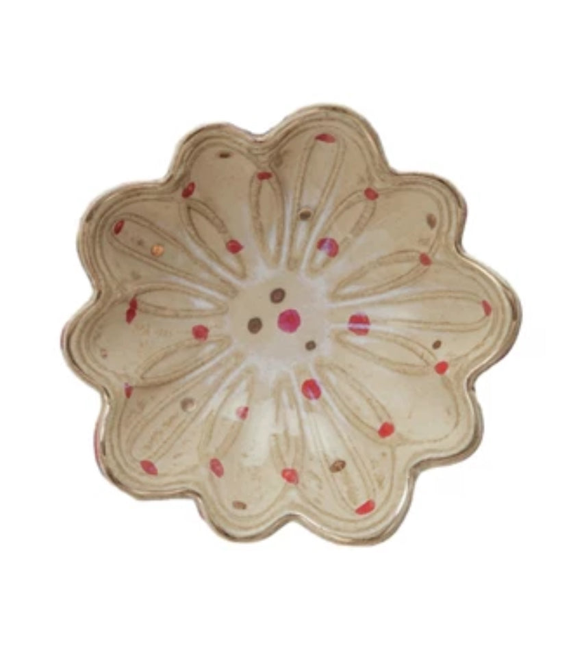 3-1/2" Round x 1-1/4"H Decorative Stoneware Flower Shaped Dish w/ Hand-Painted Dots & Gold Electroplating, Multi Color