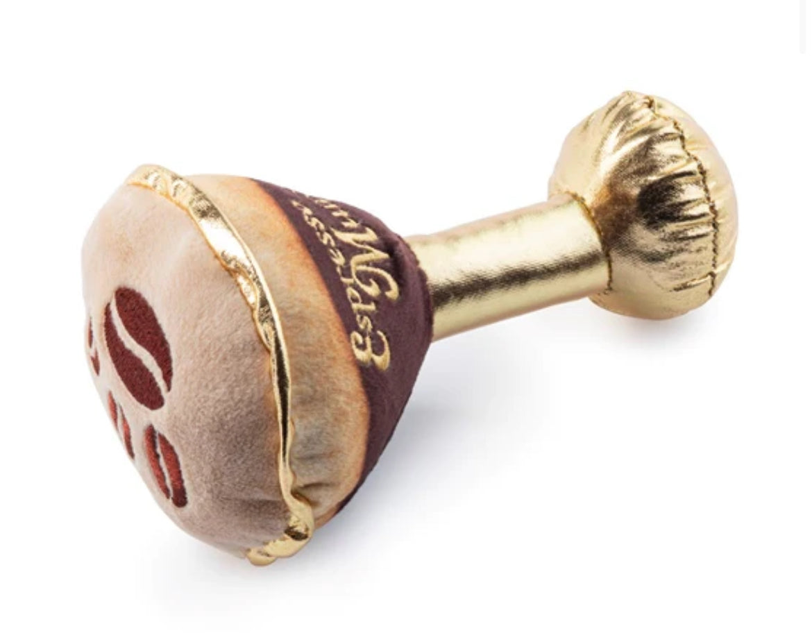 Perk up your pup's playtime with the Espresso Muttini! This plush, squeaky dog toy is the perfect blend of chic and charm. Let your furry friend indulge in the trendiest play accessory inspired by the coffee culture.