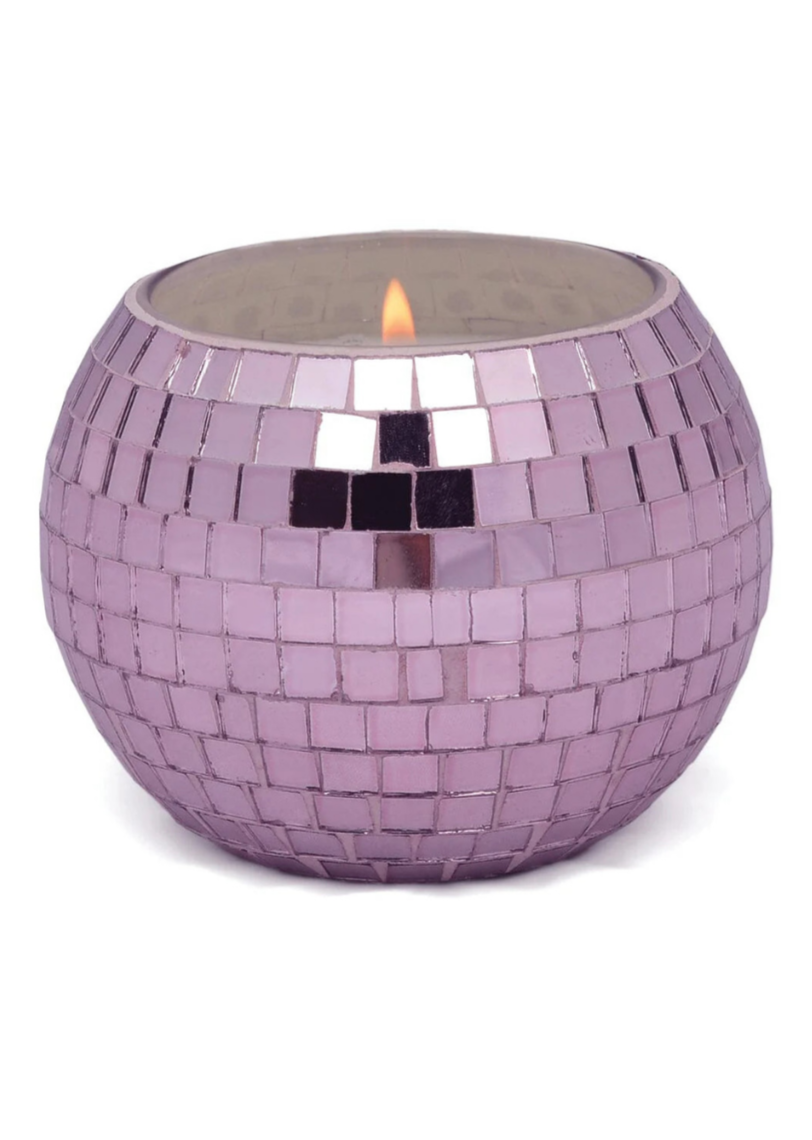 Boogie on into the new year with these hand-crafted glass mirror ball candles inspired by disco! These glistening candles, offered in four shades of color, double as a dazzling piece of home decor. Repurpose the candles into a pencil cup or vase after the wax burns through!