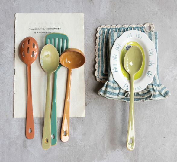11-1/2"L - 14-1/4"L Enameled Stainless Steel Utensils w/ Colored Edge, Multi Color, 4 Styles