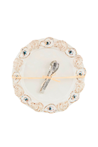 -2-piece set. Stoneware platter features layered stoneware oyster shell rim. Comes with stainless steel oyster tongs.