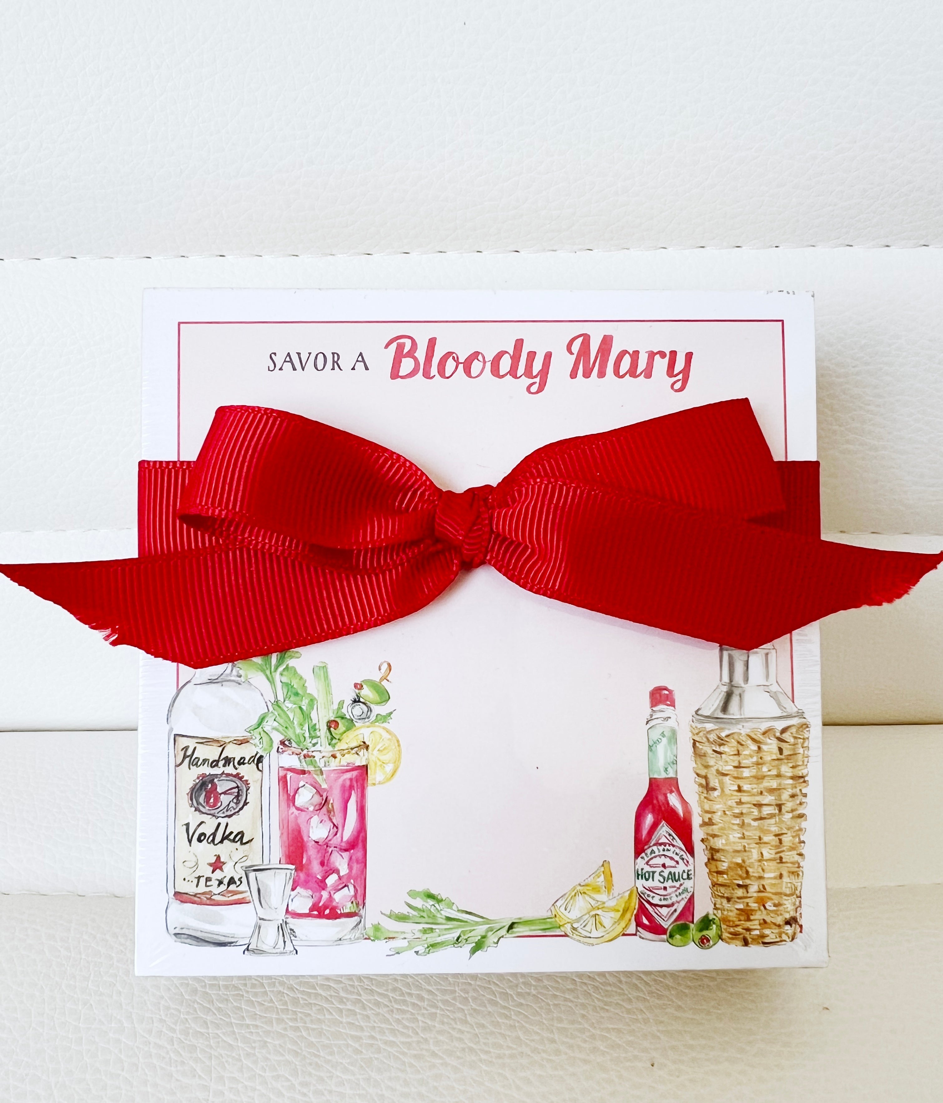 With gilded gold edges, heavy card stock and a coordinating ribbon, this notepad is one of our most popular items!