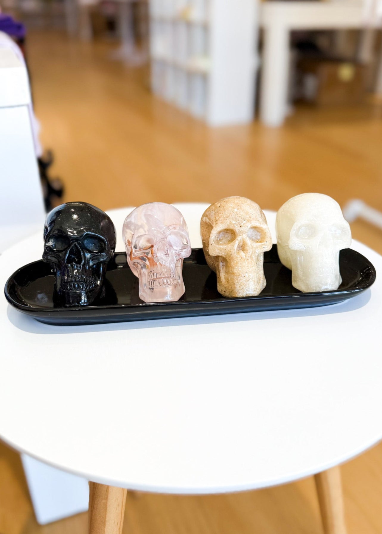3-1/4"L x 2-1/4"W x 2-3/4"H Resin Skulls, Multi Color, Boxed Set of 4