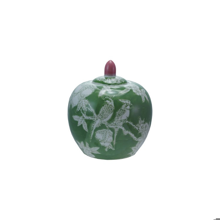 This stunning stoneware ginger jar is a true work of art, featuring a vibrant color palette and intricate design of birds. Measuring 7" in diameter and 8-1/4" in height, this jar is the perfect statement piece for any room in your home. The craftsmanship and attention to detail make it a unique addition to your decor, whether used to store small items or displayed on its own. With its beautiful design, this ginger jar is sure to spark conversations and become a focal point in any room. Bring a touch of nature and artistry into your home with this exquisite piece.