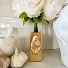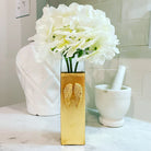 8” x 2" x 2" square, weighted bottom vase, gold leaf with decorative element