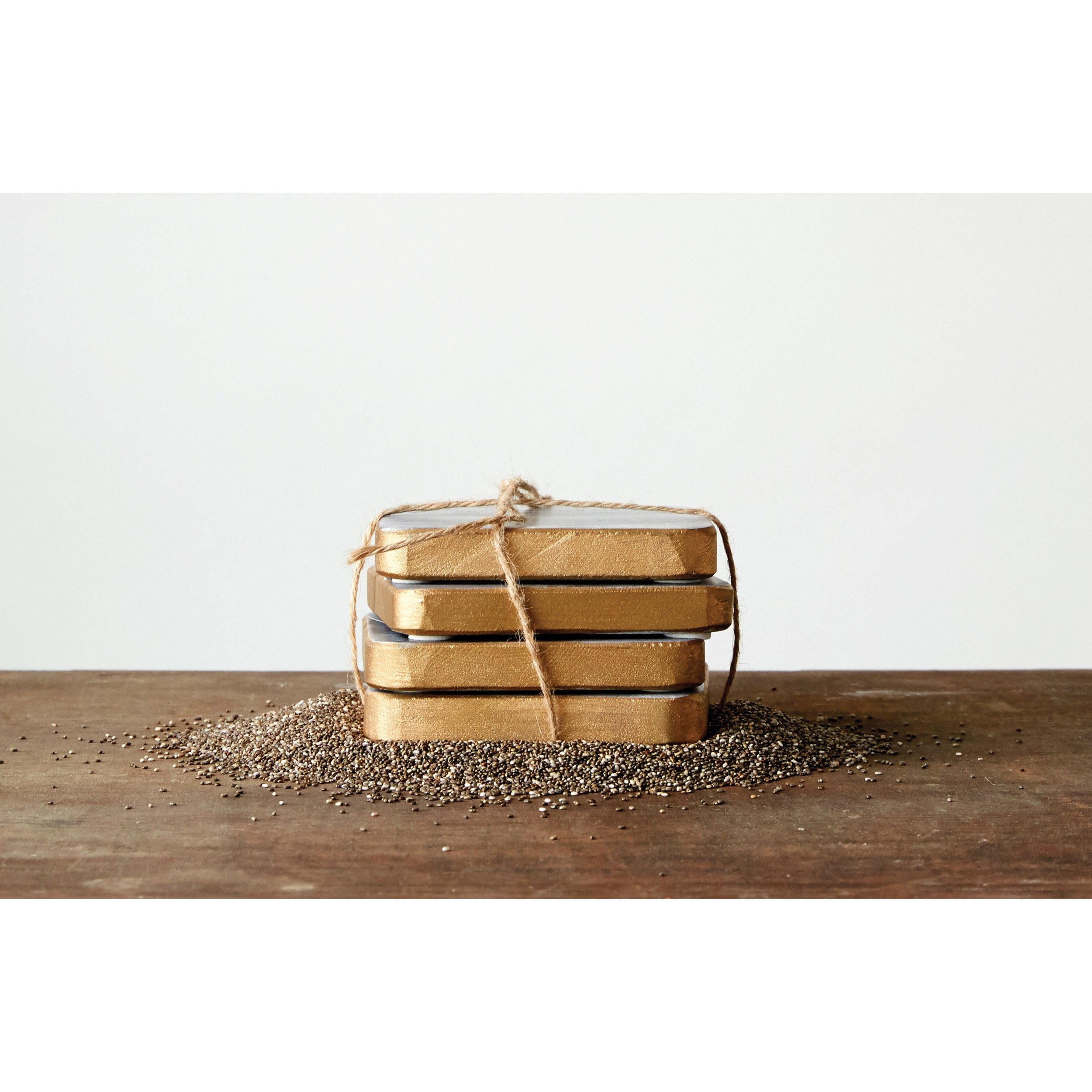 The little things mean a lot and your coasters say a lot about your decorating style. Your personality will shine through with this set of 4 marble coasters. The grey marble alone would be attractive but the gold trim on the side makes them a true treasure.