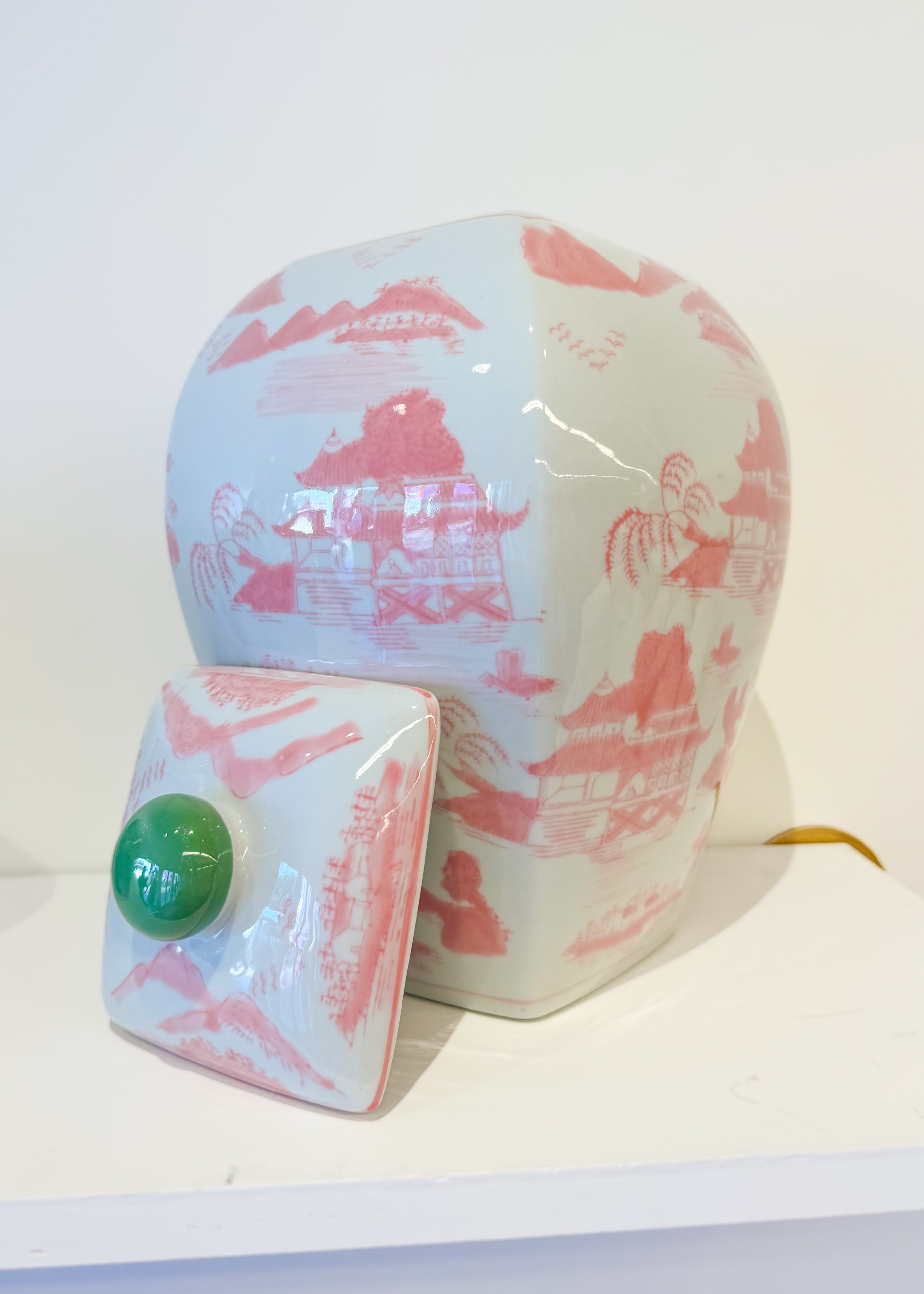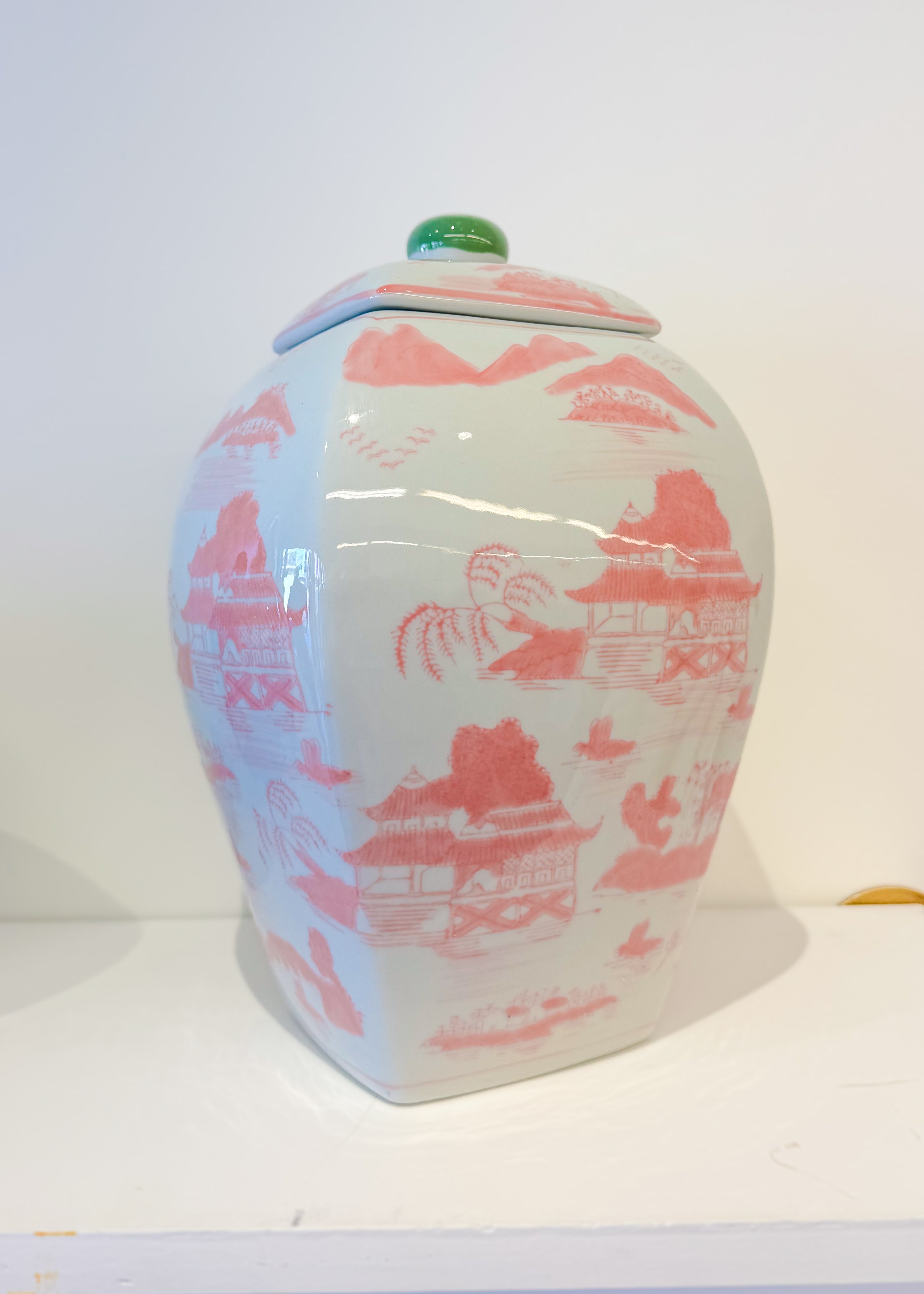 Pink/Green Stoneware Ginger Jar