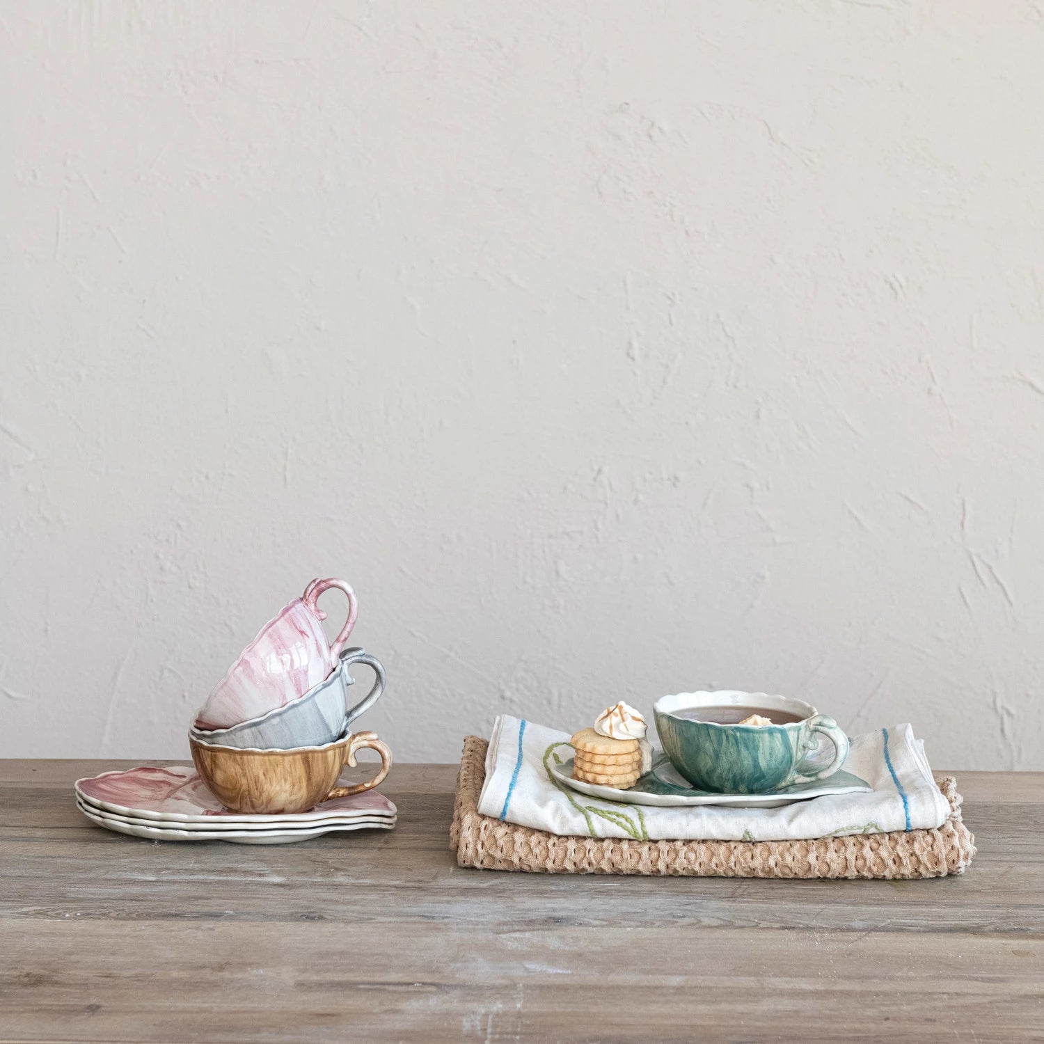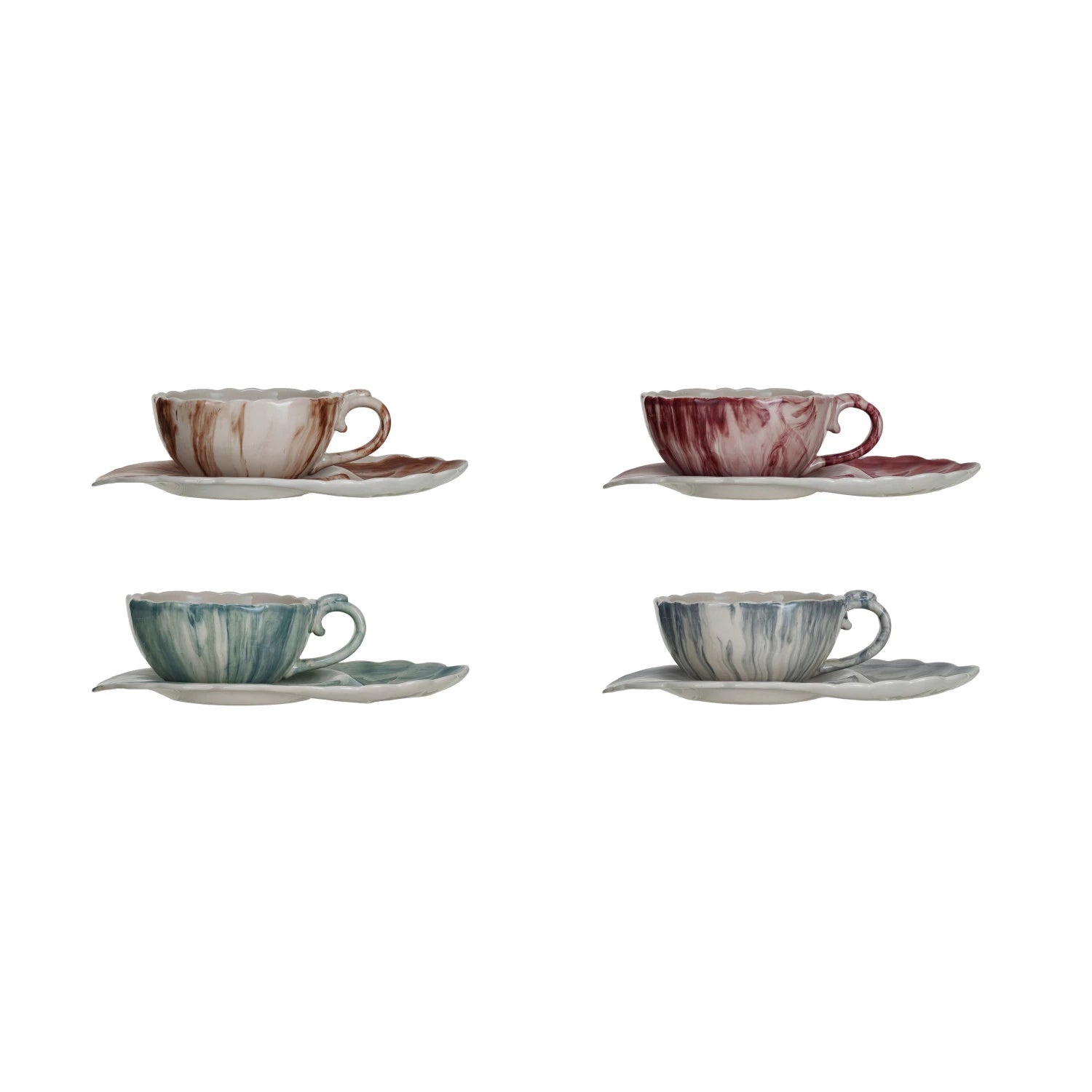 Stoneware Teacup w/ Leaf Shaped Saucer