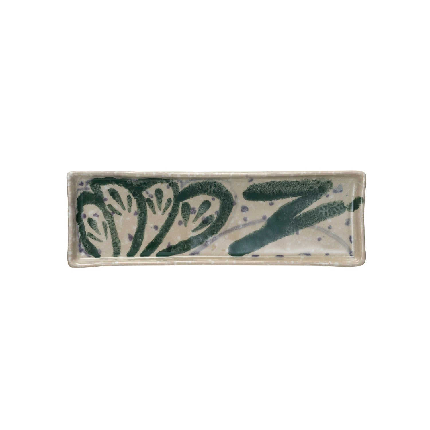 11-3/4"L x 8-3/4"W Hand-Painted Stoneware Platter w/ Abstract Design, Reactive Crackle Glaze, Multi Color (Each One Will Vary)