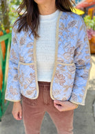 The Scarlett Jacket makes the perfect addition to any wardrobe. It features a quilted material with long sleeves, side pockets and velvet piping.
