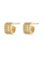 • These earrings feature a curved silhouette, creating the illusion of three distinct, concentric bands adorned with a dazzling pavé set of dainty cubic zirconia stones that embrace the earlobe.