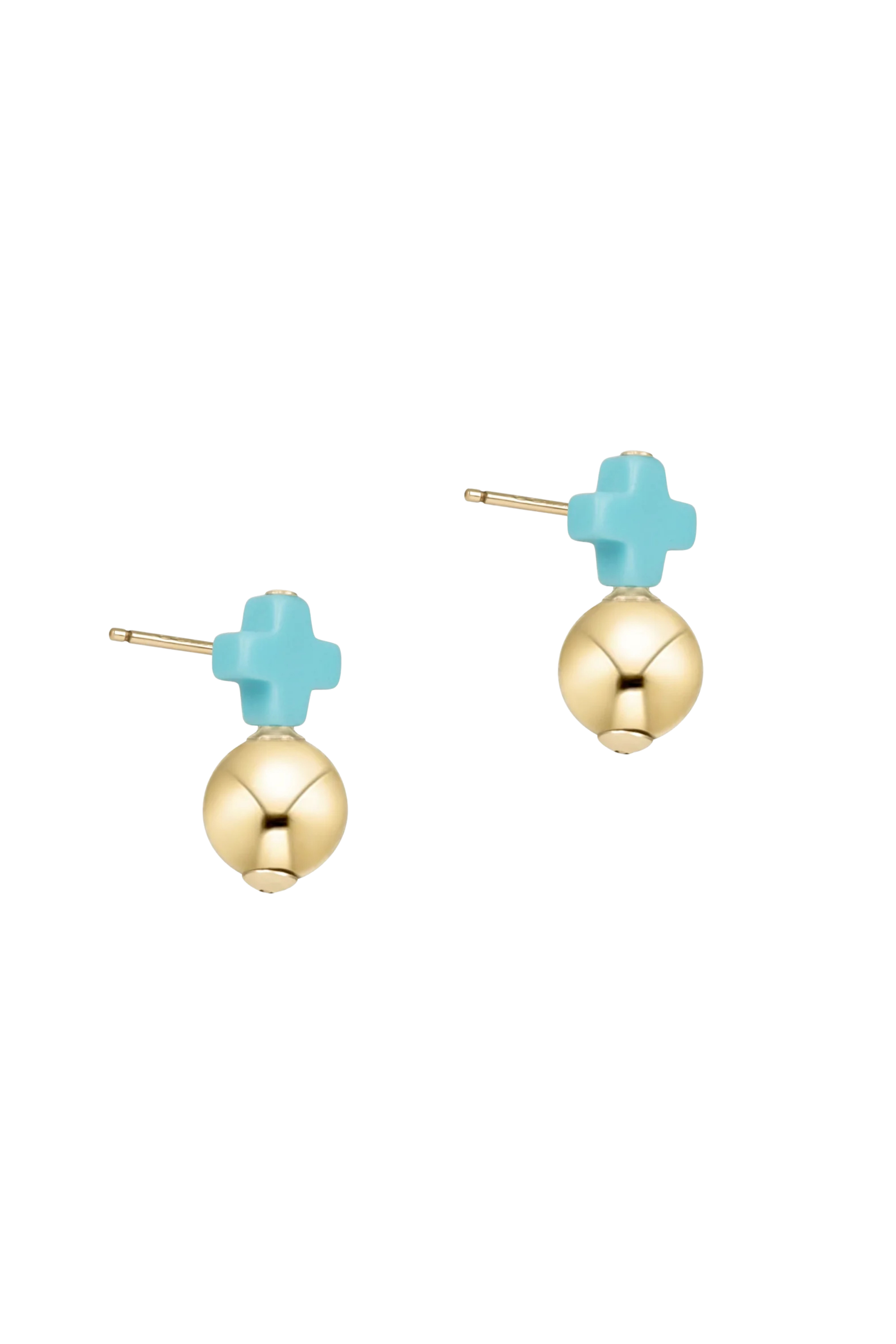 - 14kt gold-filled earring post, signature cross turquoise, 8mm gold ball