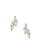 - Dainty yet stylish, these studs feature two marquise-cut CZ stones set in an elongated silhouette, adding elegance to a gold setting.