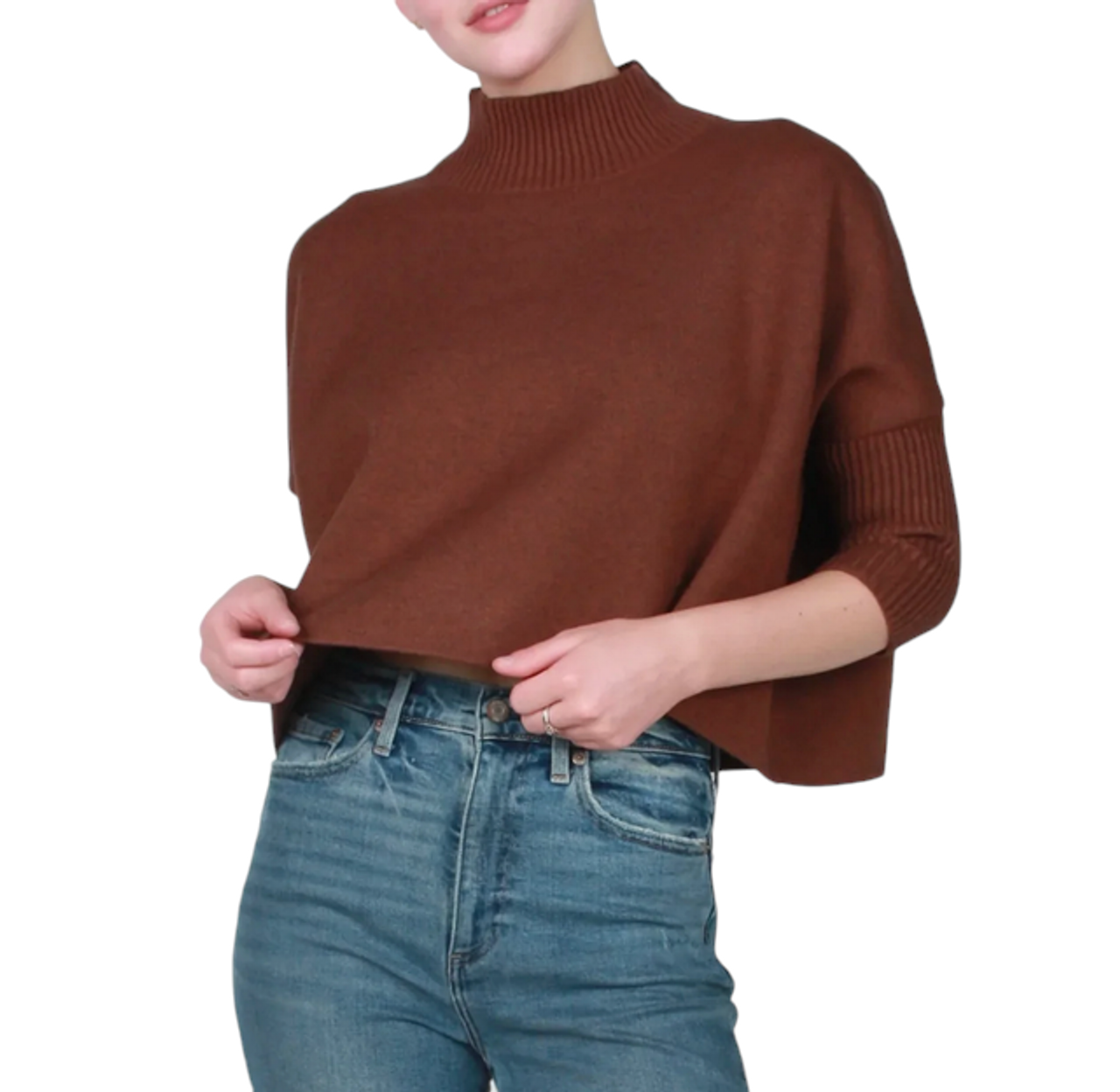 Oversized boxy sweater with fitted rib turtleneck & 3/4 sleeves