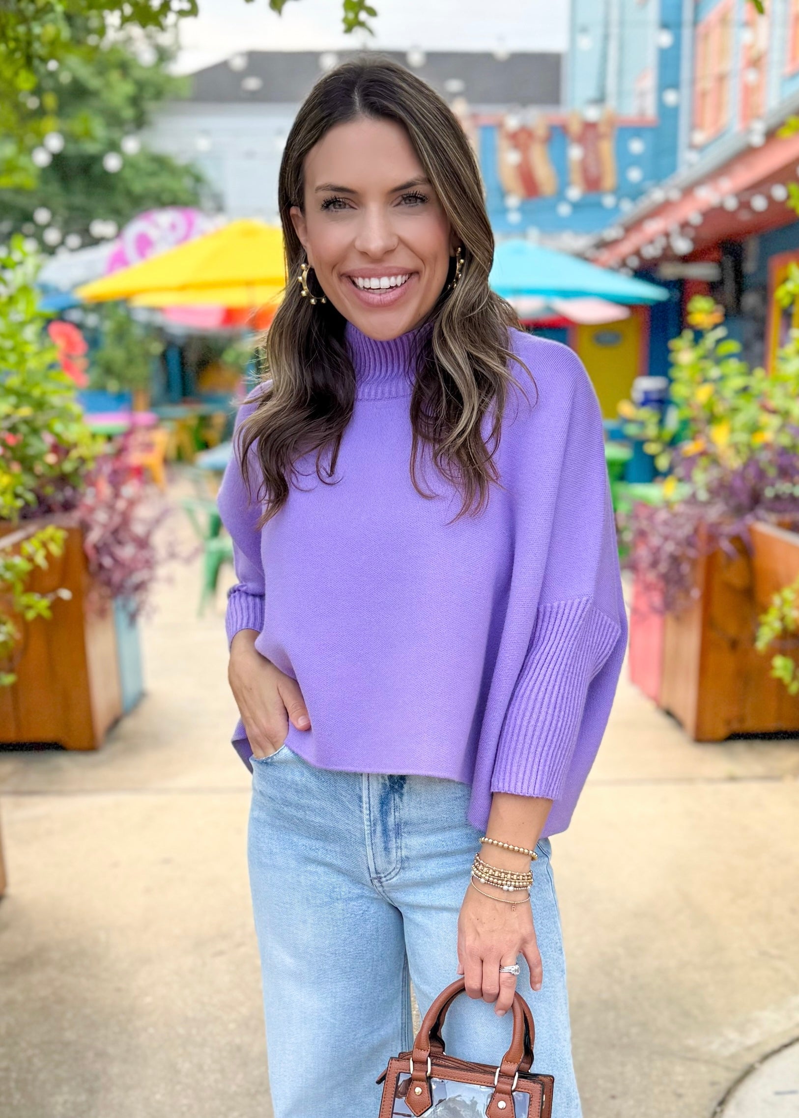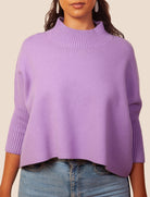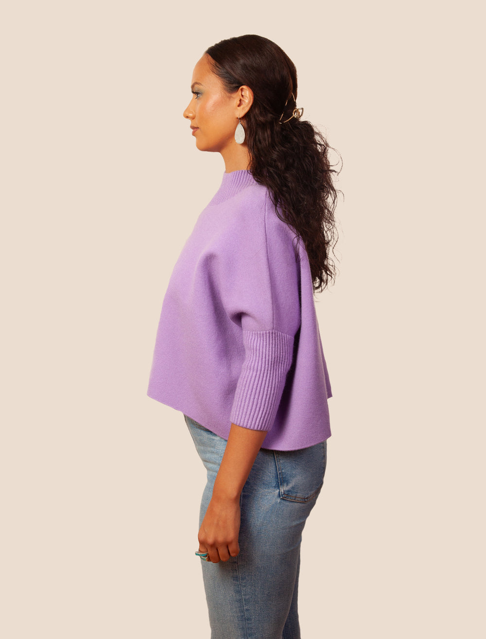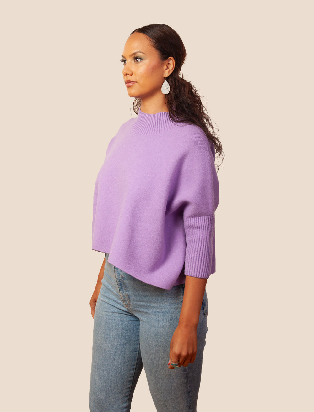 Oversized boxy sweater with fitted rib turtleneck & 3/4 sleeves