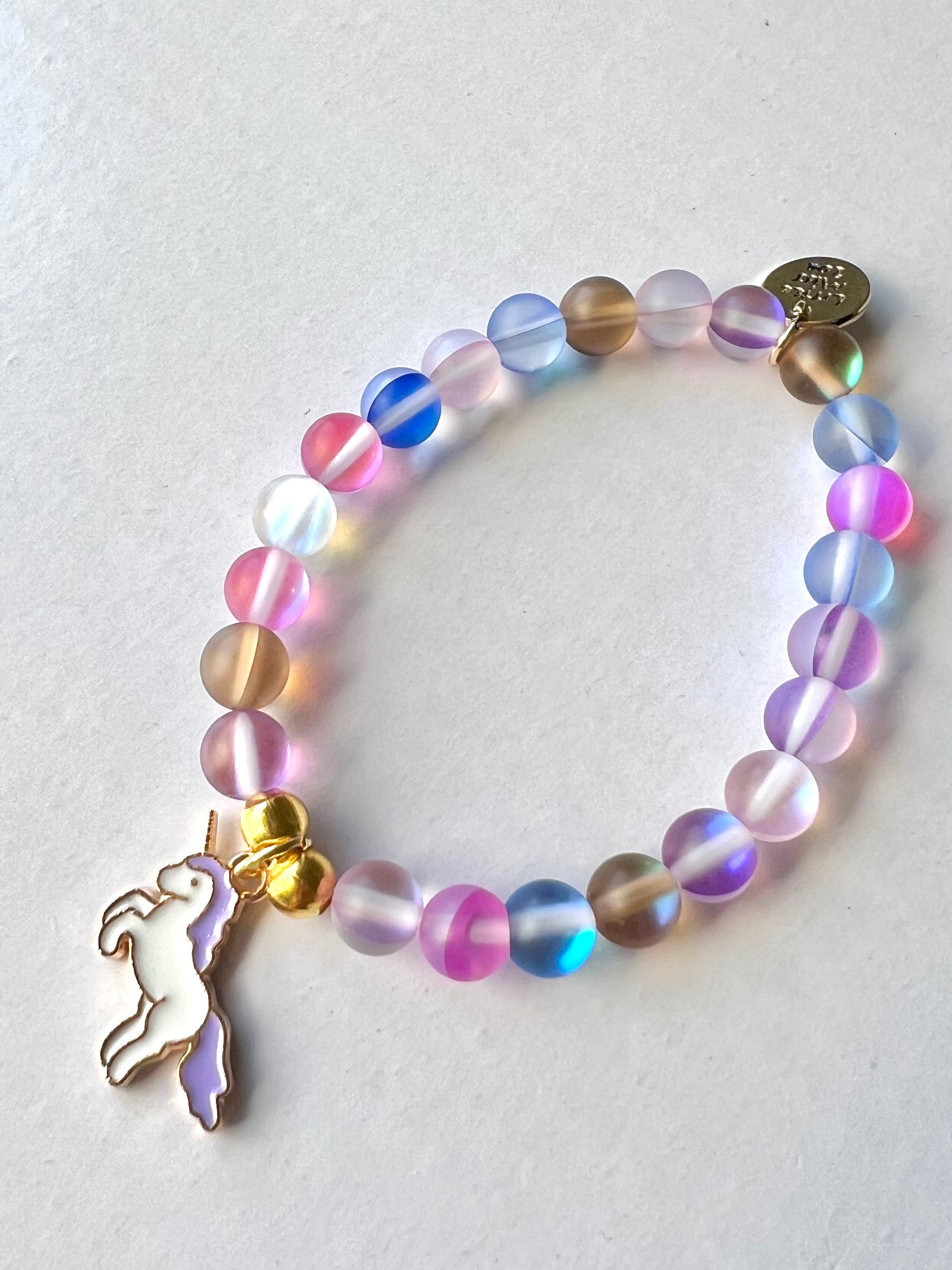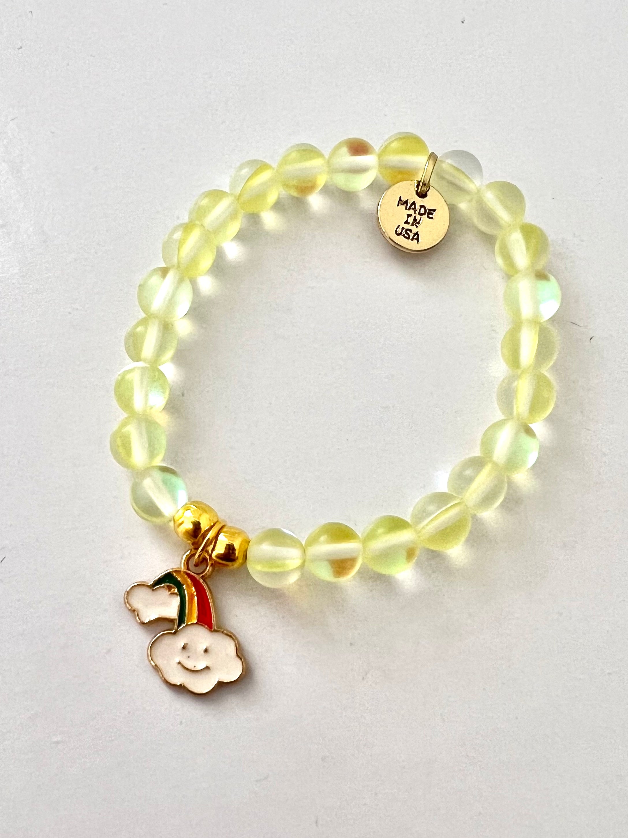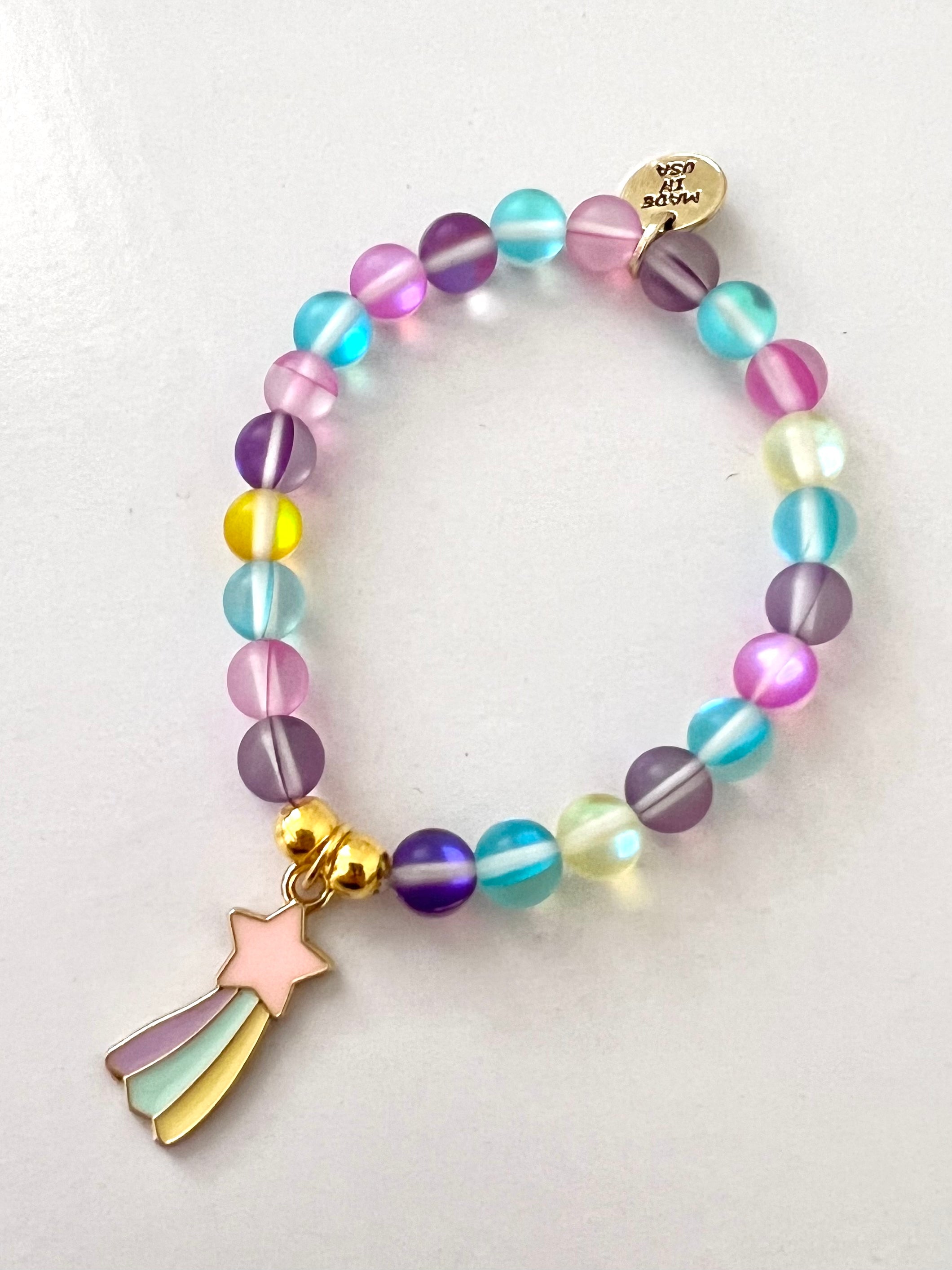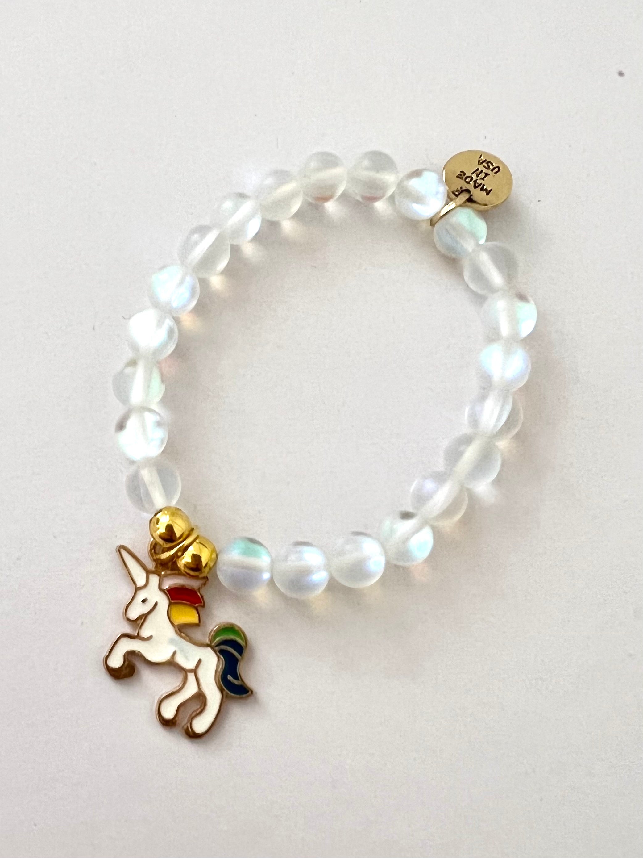 Let your wrist game shine with this little band of awesomeness. Semi-precious gemstone bracelet accompanied by colorful charmS is the perfect way to show off your unique style and personality. Made with love in CA from super comfy materials, these bracelets are the ultimate accessory for school, playdates, and everything in between.