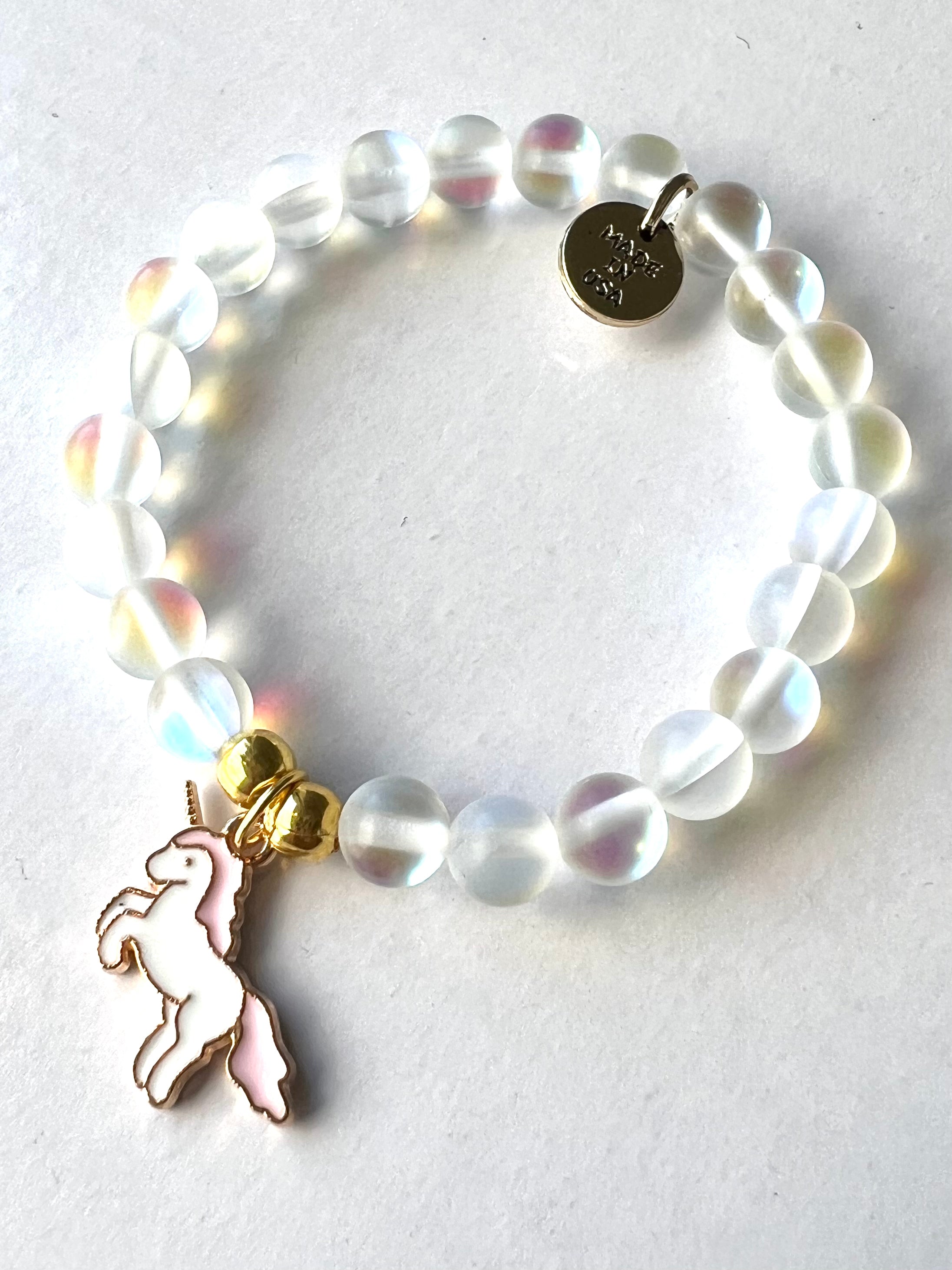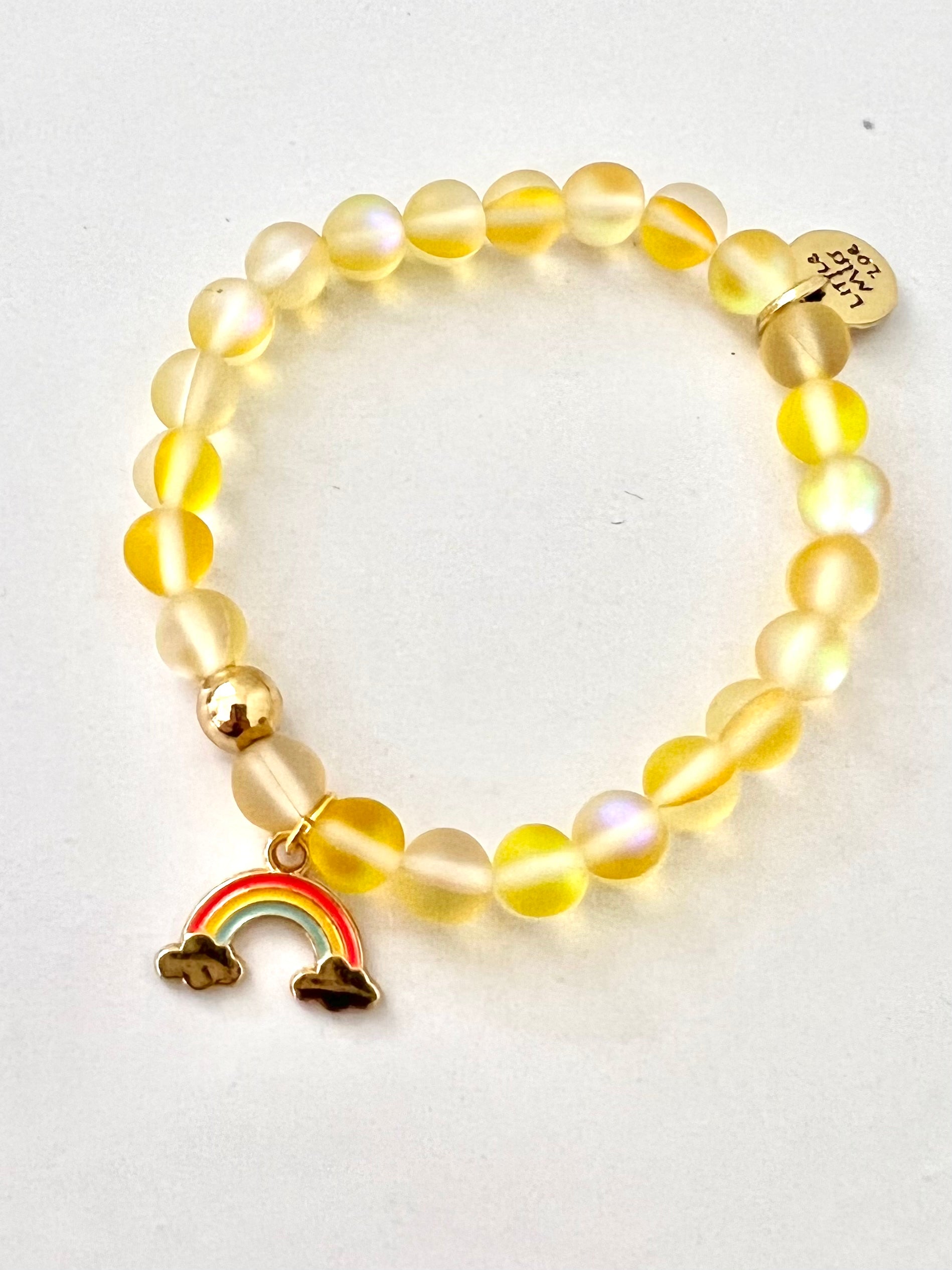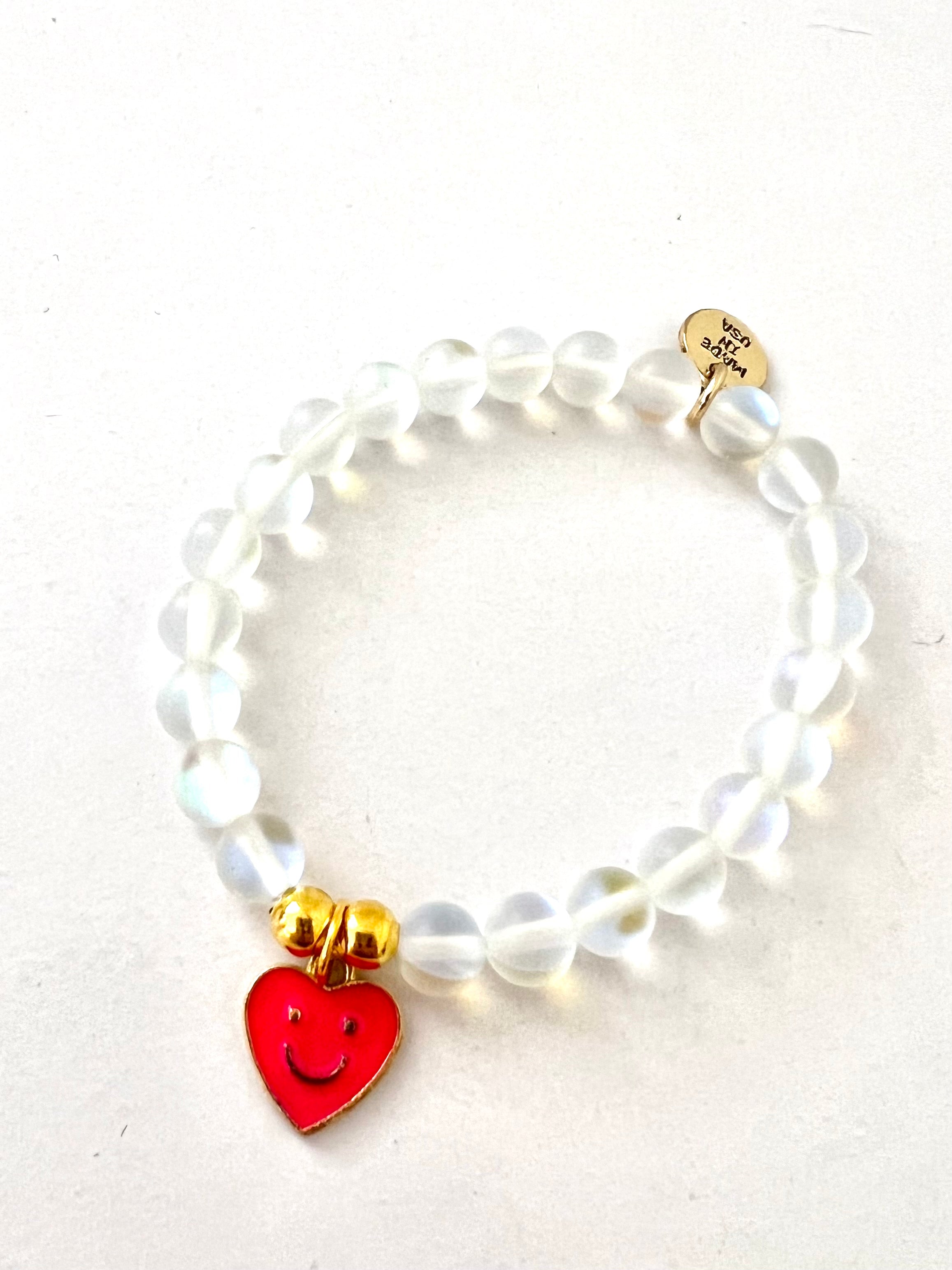Let your wrist game shine with this little band of awesomeness. Semi-precious gemstone bracelet accompanied by colorful charmS is the perfect way to show off your unique style and personality. Made with love in CA from super comfy materials, these bracelets are the ultimate accessory for school, playdates, and everything in between.