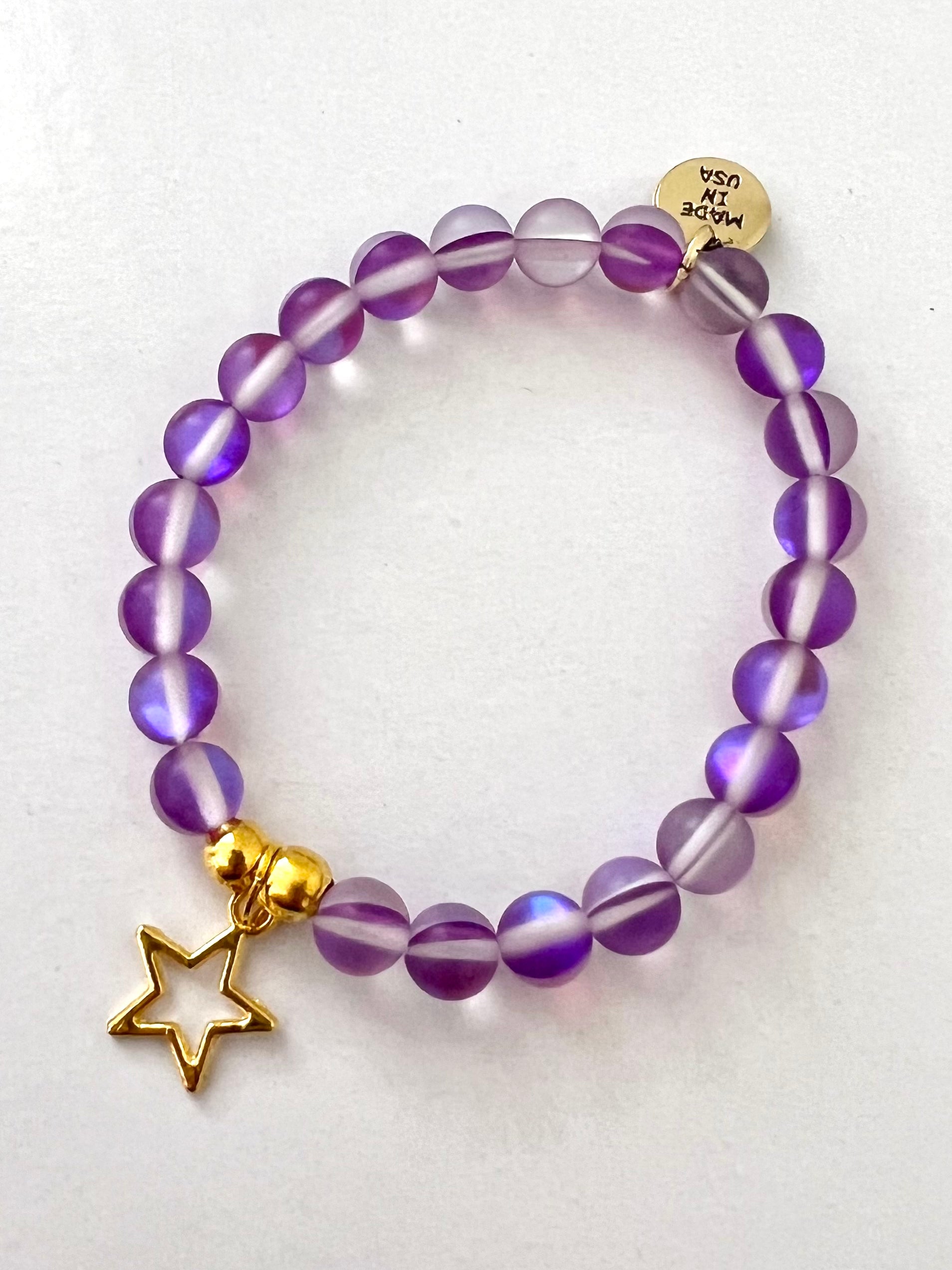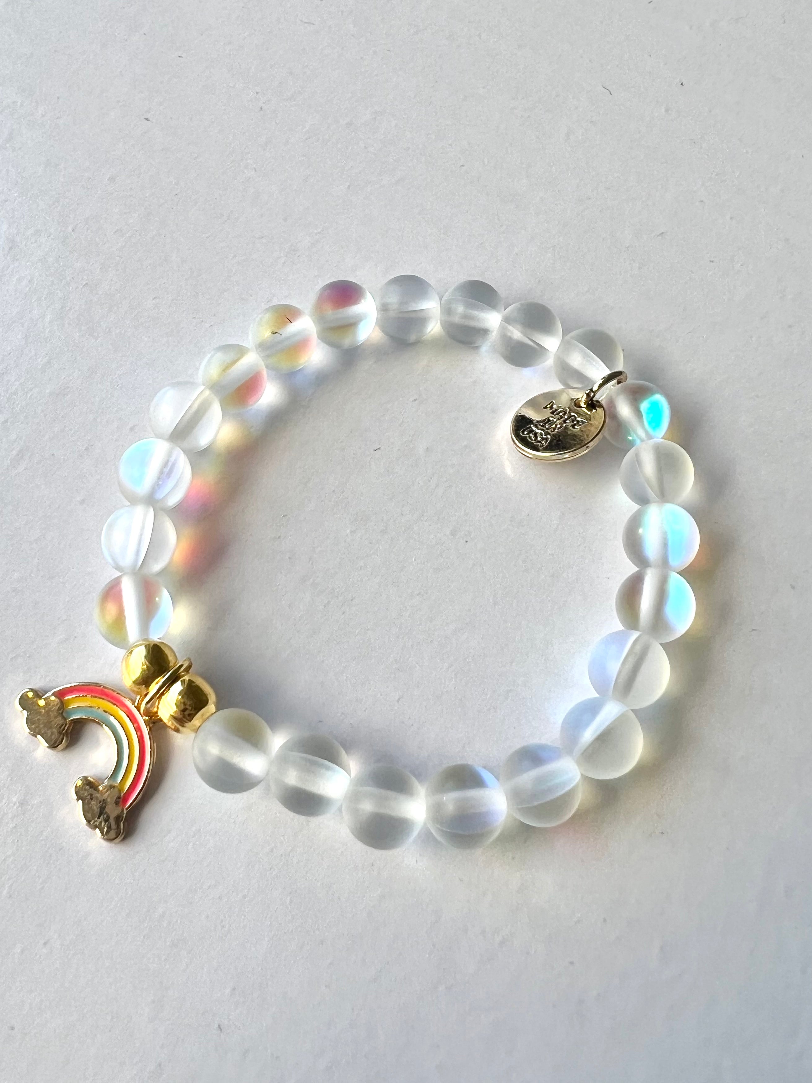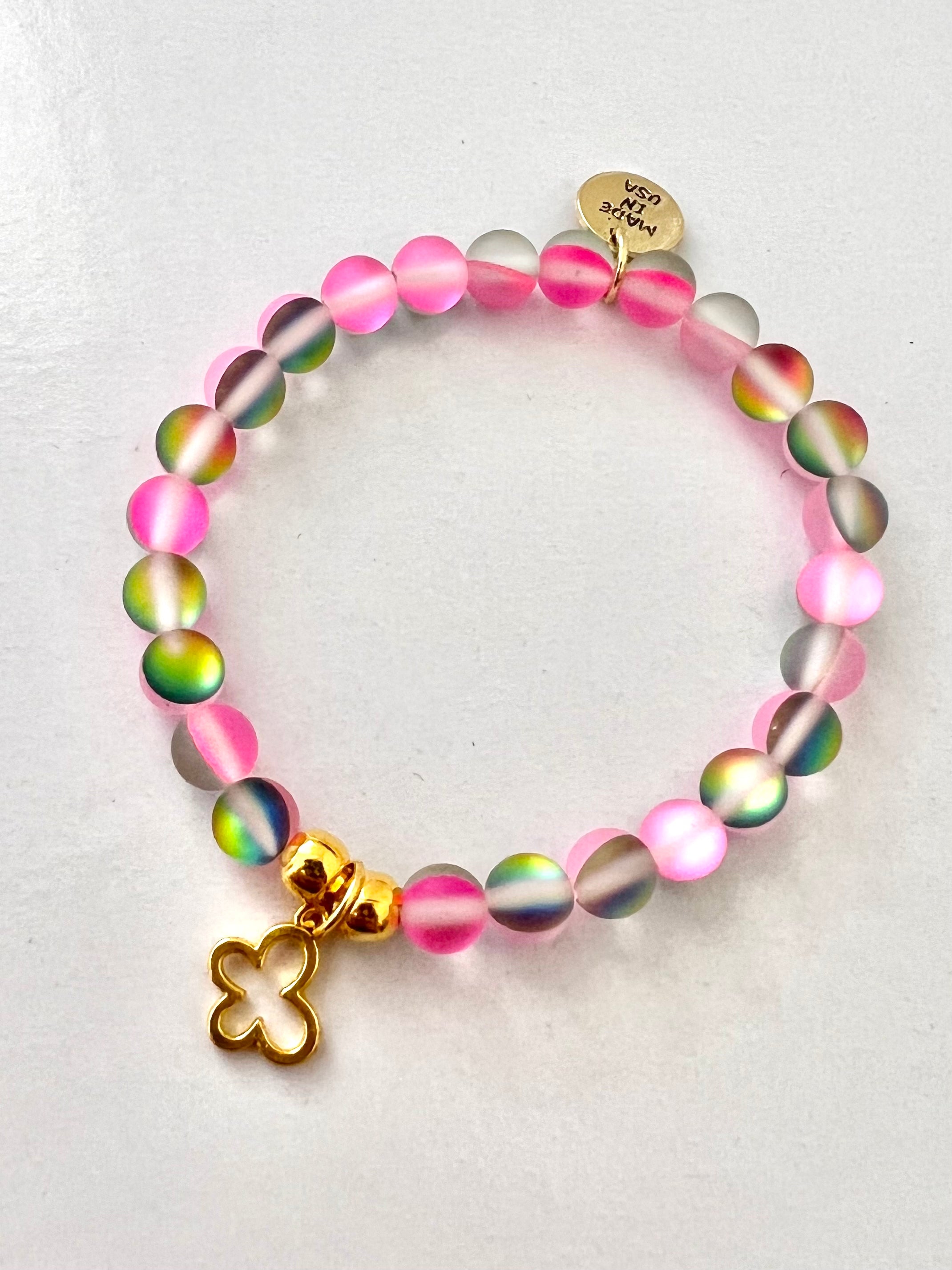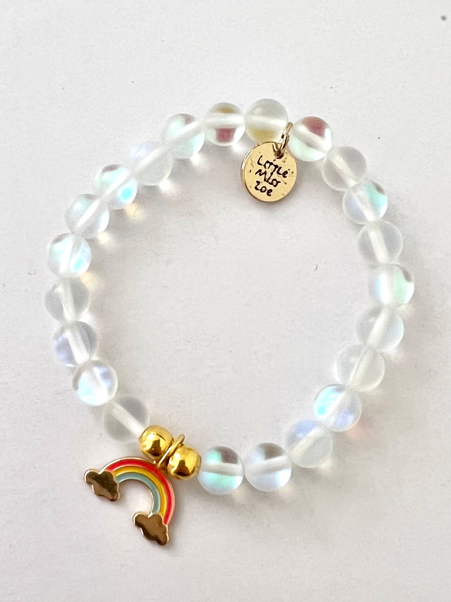 Let your wrist game shine with this little band of awesomeness. Semi-precious gemstone bracelet accompanied by colorful charmS is the perfect way to show off your unique style and personality. Made with love in CA from super comfy materials, these bracelets are the ultimate accessory for school, playdates, and everything in between.