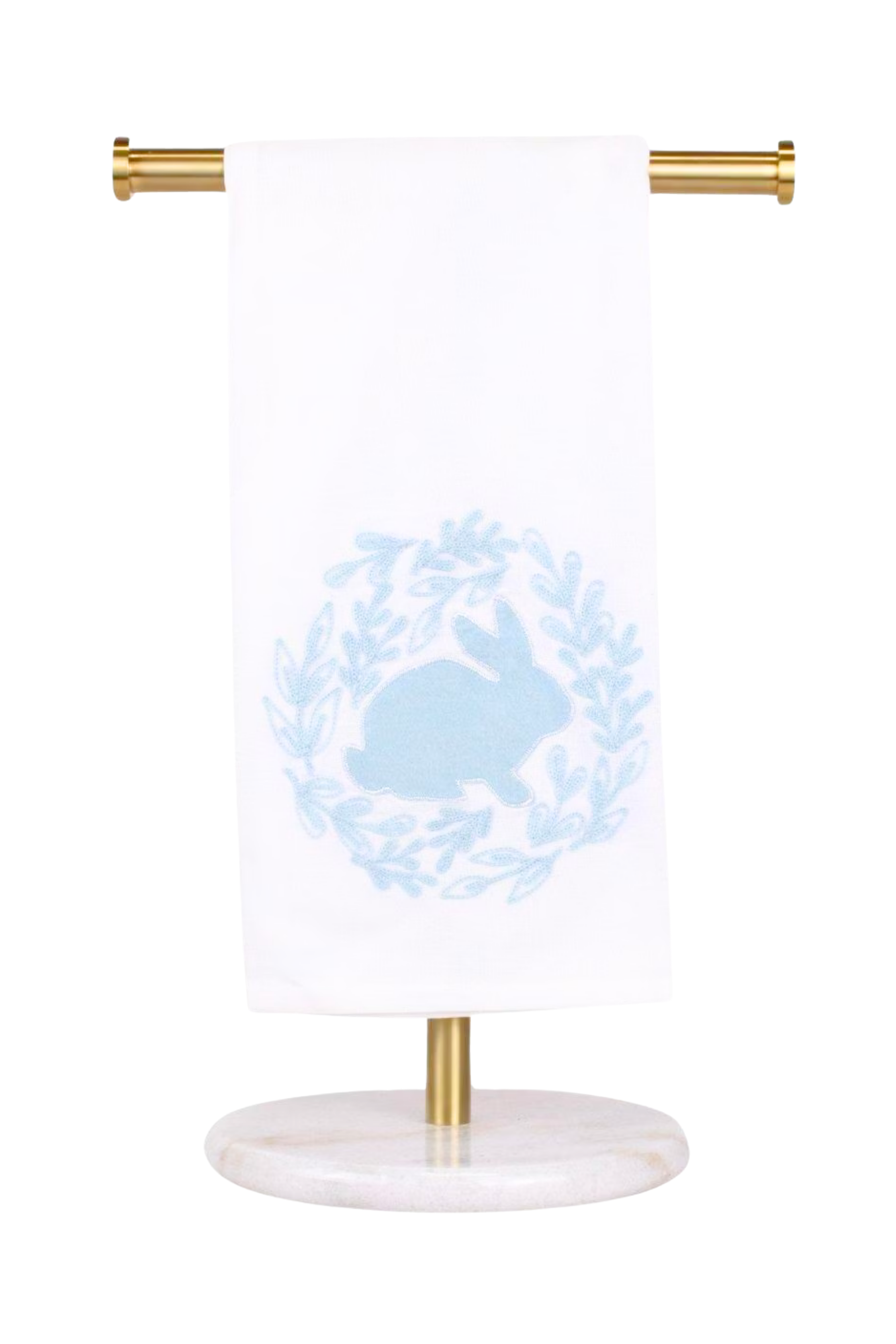 The Harvey Bunny Hand Towel in White/Blue measures 20x28 inches and is a delightful addition to any bathroom. This soft and absorbent hand towel features a charming bunny design that is sure to bring a touch of whimsy to your daily routine.