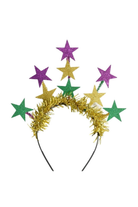Festive Star Design: This headband features bright stars and colorful tinsel, embodying the vibrant spirit of Mardi Gras and adding a playful touch to any festive outfit.