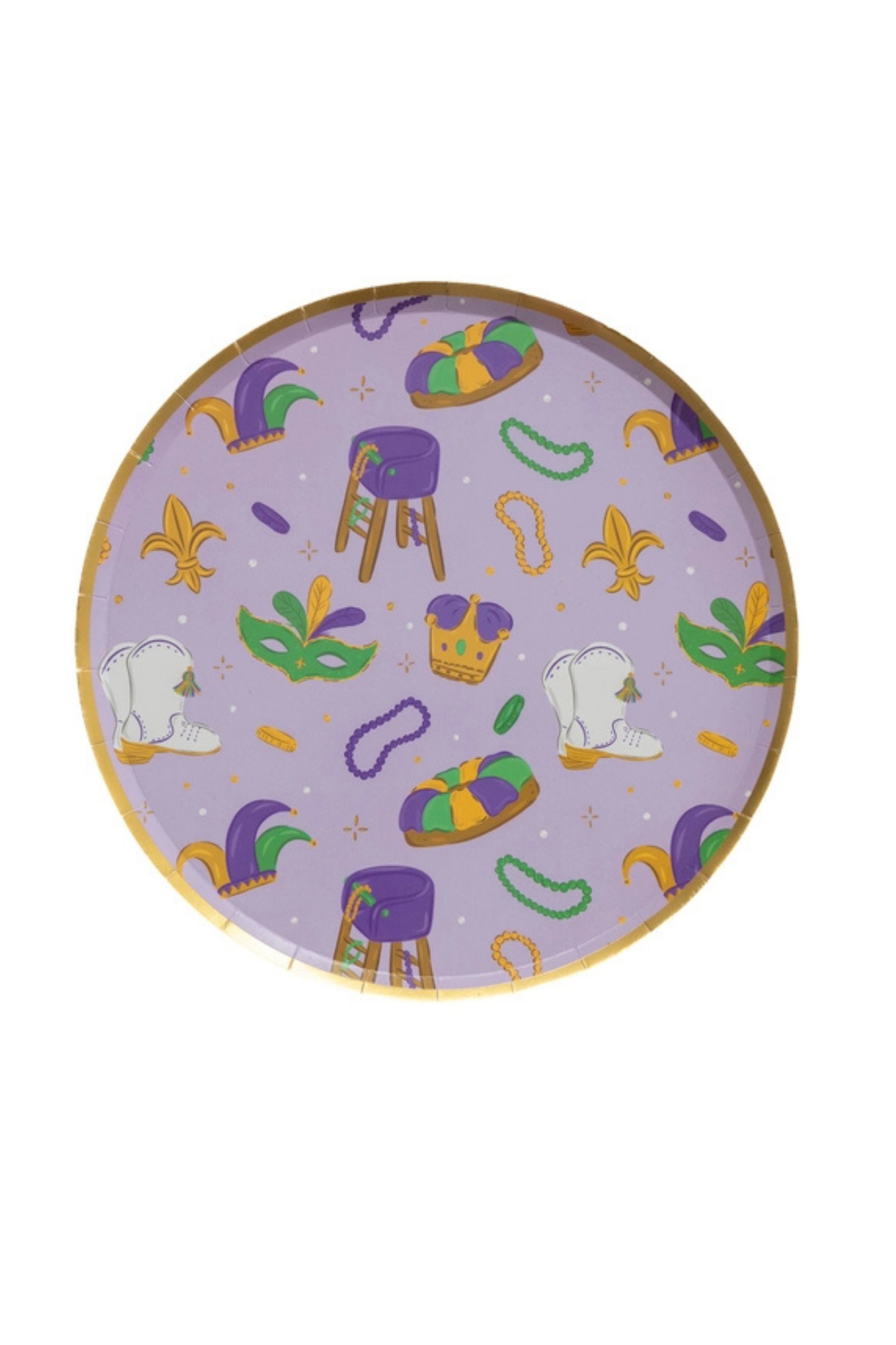-12 plates per pack -Size: 9 in. -Durable, high-quality paper -Food-safe, fade-resistant ink -Coordinates with King Cake Party napkins, King Cake plates, and cups