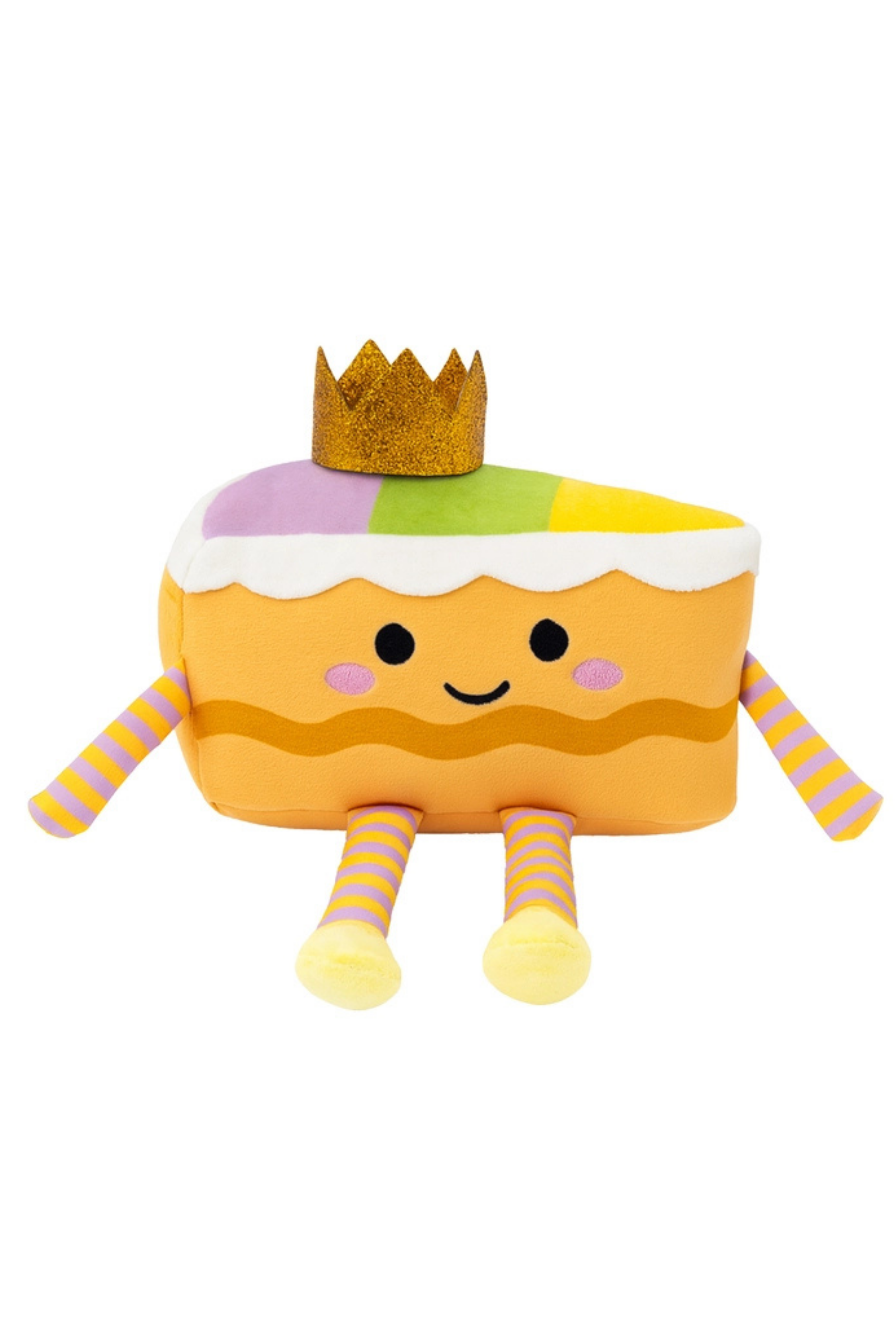 7" wide x 6" tall when sitting – perfectly sized for hugs and display * Weighted with beads in the bottom so he sits upright * Ultra-soft plush fabric – cozy and huggable * Makes a fun Mardi Gras gift, Louisiana souvenir, or carnival collectible * Bright, colorful, and full of carnival cheer – the ultimate king cake stuffed animal Bring home the King Cake Squishy plush and let the good times cuddle! 🎭✨