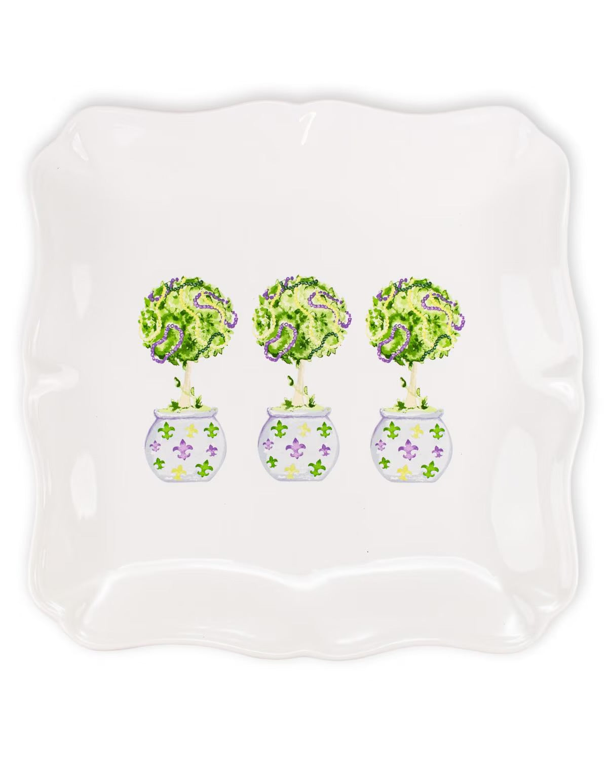 Bring Mardi Gras charm to your table with this whimsical Mardi Topiary Square Platter. Featuring festive topiary designs in vibrant seasonal colors, it’s a fun and functional piece for serving up sweets, snacks, or appetizers.