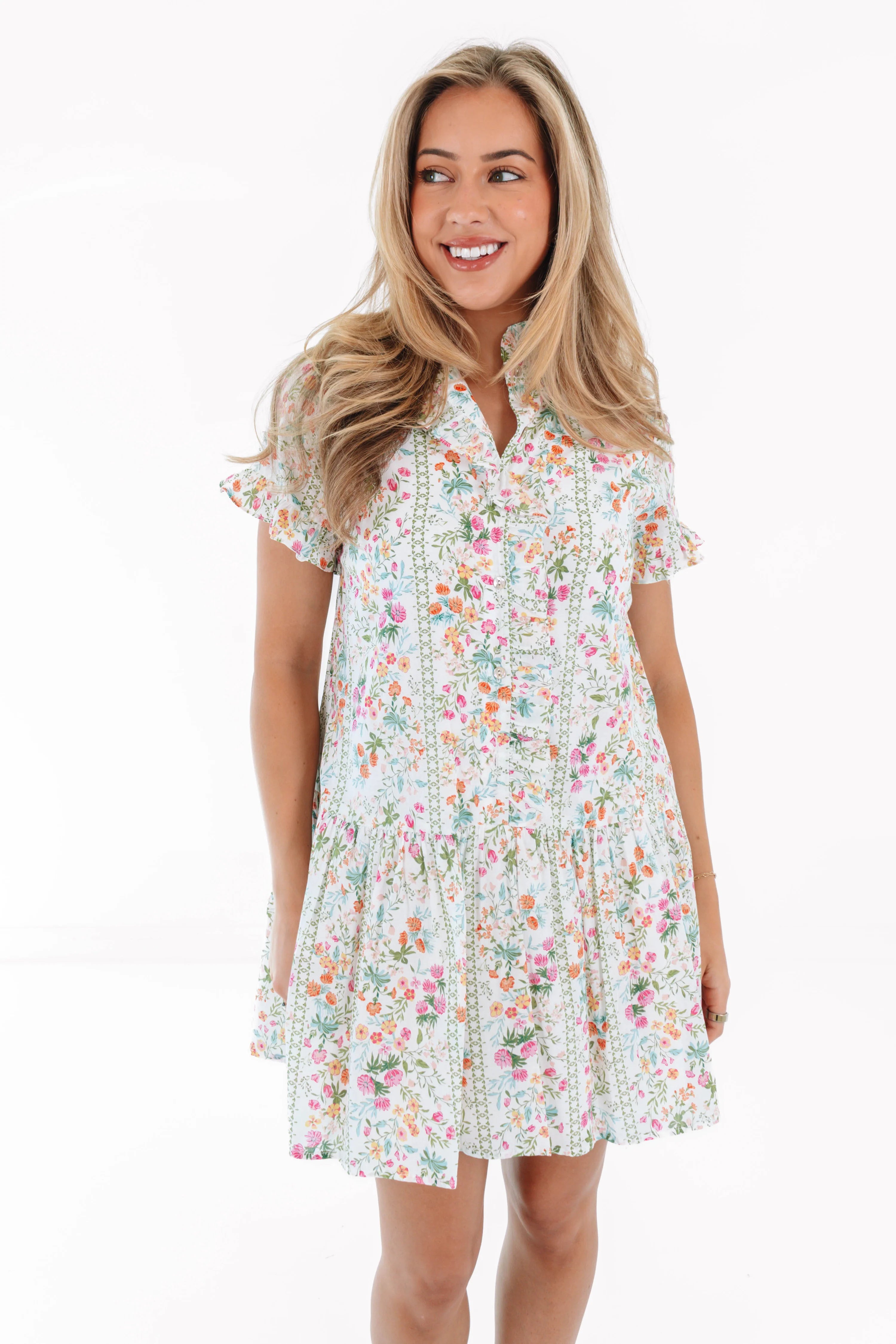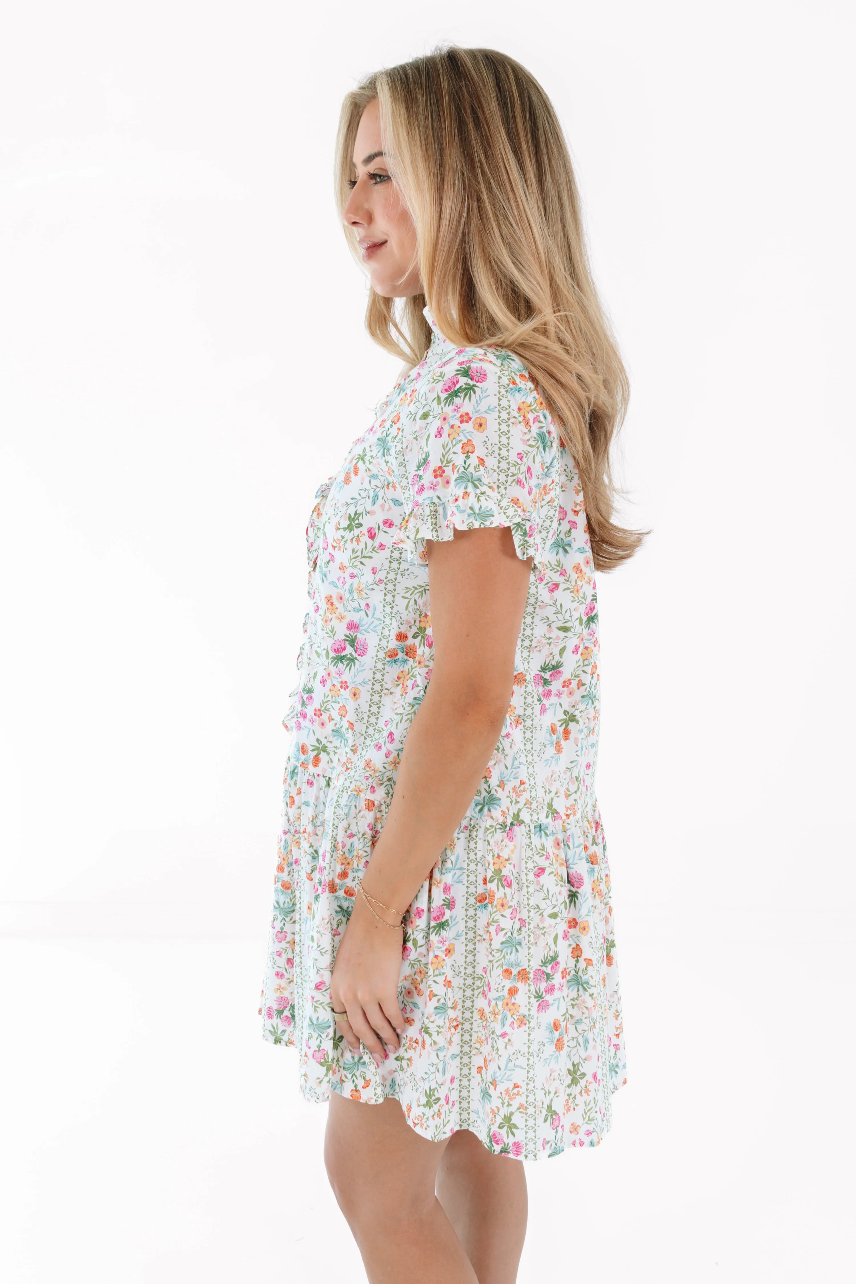 This playful short dress features button up neckline and ruffle sleeves, adding a touch of charm & movement. With its flowy silhouette & convenient pockets, it's both stylish & practical—perfect for casual outings or a laid-back day of fun!