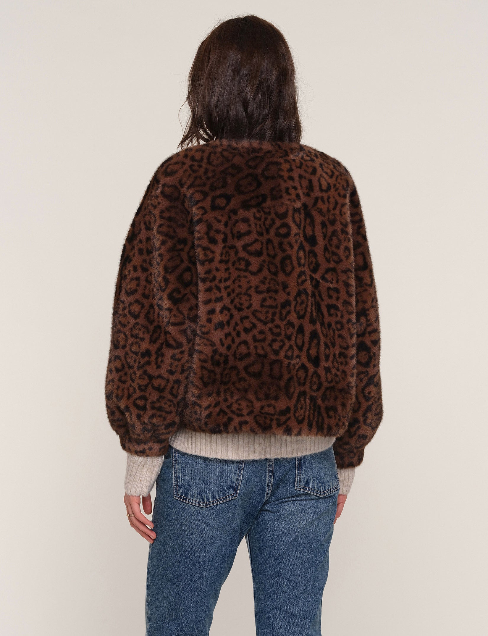The Patty Coat is a leopard, faux fur topper. It has a zipper front, elastic cuffs and a relaxed fit. Throw it over all your sweater-and-jean looks to complete the outfit.
