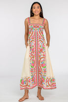 With her fitted empire bodice and flattering paneled skirt, Annalisa is a favorite silhouette all year long. She looks especially chic in this stunning Scroll print, elevated with a an intricate border pattern. Adjustable straps and a smocked back offer a comfortable fit for the perfect midi dress.size chart