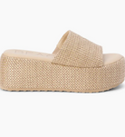 Woven composition enhances the down-to-earth vibes of a platform-wedge sandal that's sure to be a weekend fave.