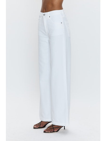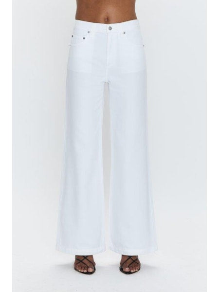 The perfect summer jean, designed to sit low on the hips with a relaxed palazzo leg silhouette. Crafted from a lightweight rigid denim and offered in white colored denim.
