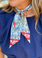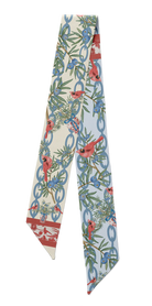 Discover the natural elegance of our Cardinal and Blueberry scarflette scarf, a charming accessory that brings woodland beauty to your everyday style. Featuring vibrant red cardinals perched among lush green foliage and blue berries, all connected by an elegant chain-link pattern, this versatile piece adds a touch of nature-inspired sophistication to any outfit.
