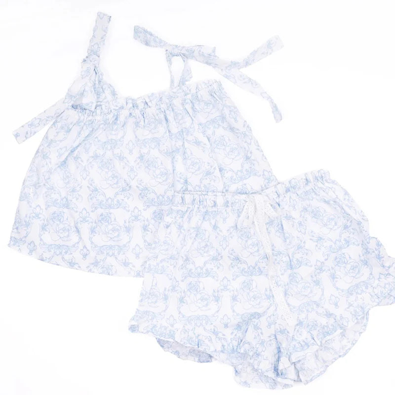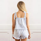 Perfect for any special occasion, this two-piece loungewear is designed to treat you or your giftee with the highest style standards in fashion each and every night. With its eye-catching blue rose print, high-quality fabric, and airy silhouette, this sleep set will make it hard not to want to stay in bed all day! The relaxed fit works for any body type and can easily be machine washed for upkeep. Put some luxury into your downtime with the Blue Rose Tie Top Sleep Set – you won’t regret it! Printed 100% Woven Cotton Machine Wash Cold, Gentle Cycle with Like Colors Tumble Dry Low Do Not Iron Do Not Dry Clean Designed in the USA Imported XS/S = Women's Size 0-4 MD = Women's Size 6-8 L/XL = Women's Size 10-14
