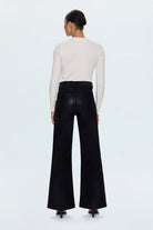 The best-selling wide leg that commands the room. Lana sits at a high rise with an ultra wide leg silhouette and full-length 33" inseam that feels effortlessly dramatic. The ultra wide opening creates maximum impact while the relaxed fit flows beautifully. Crafted from our signature comfort stretch denim in Coated Noir, a rich black finish with luxurious coated texture.