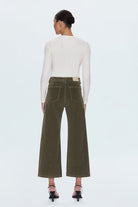 The wide leg that changes everything. Penny sits at a high rise with an ultra wide leg silhouette and cropped 27" inseam. The relaxed wide leg flows beautifully while the high rise anchors the proportions perfectly. Crafted from our comfort stretch fabric in Sequoia, a deep olive green tone.
